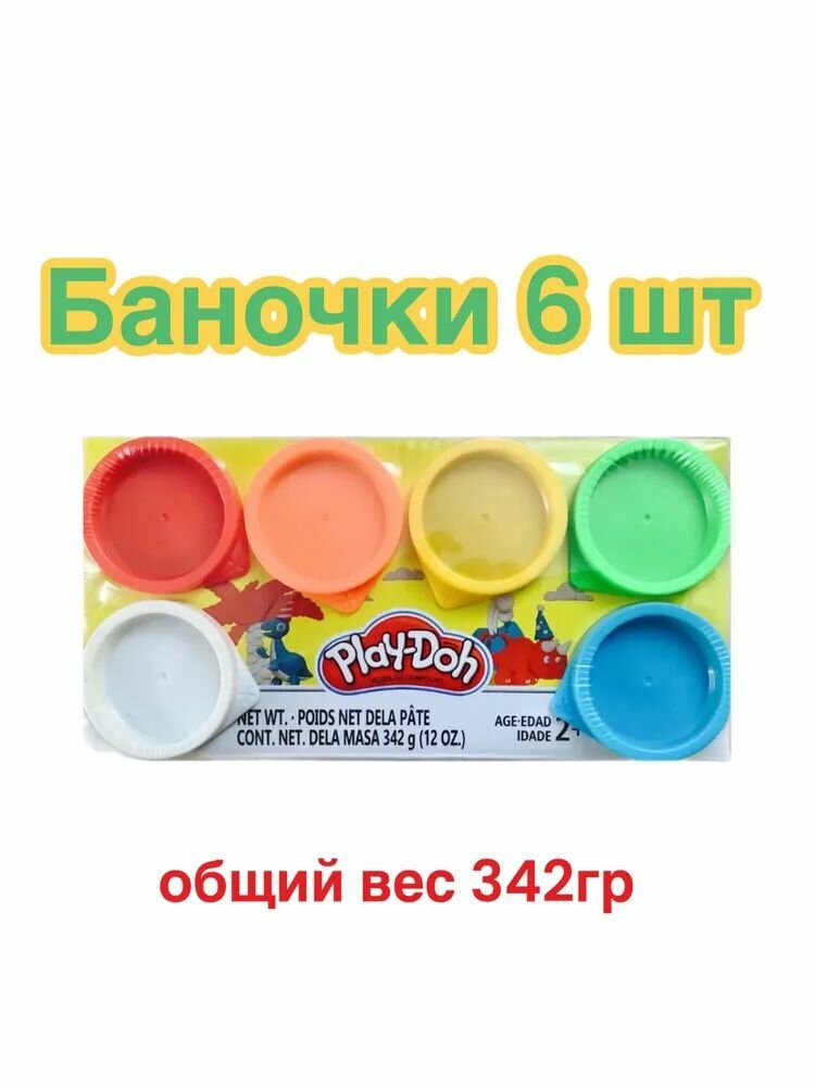 Пластилин в банкках Play-doh/ плай до масса для лепки; 6 цветов интересное: