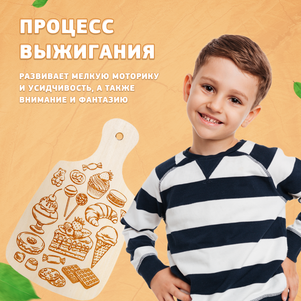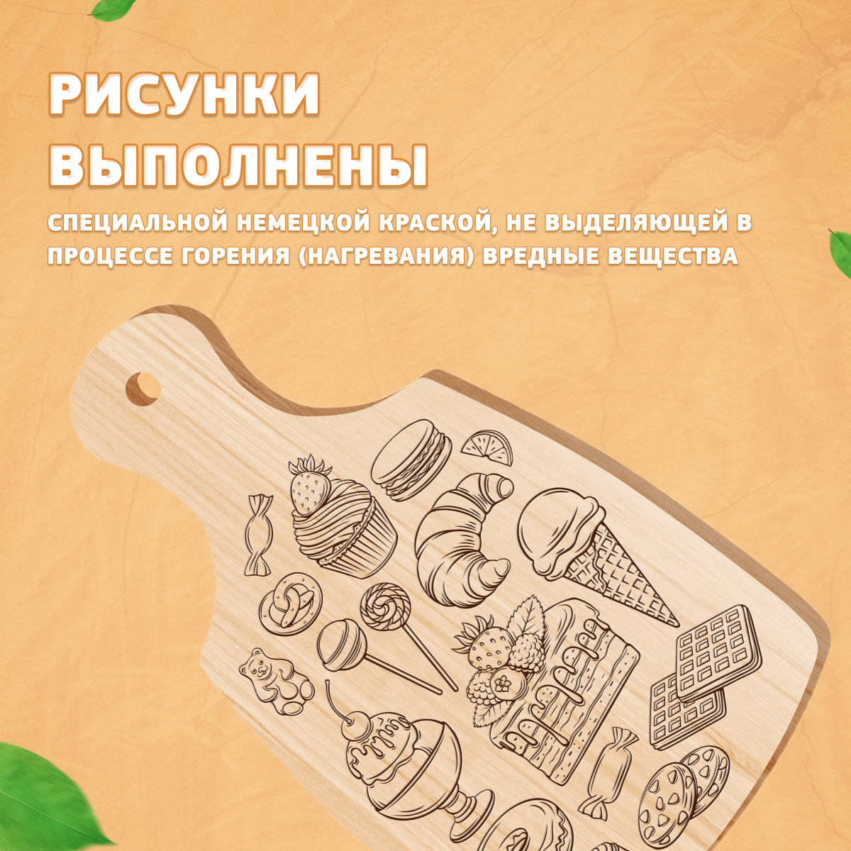 Выжигание по дереву.Разделочная доска 'Сладости'