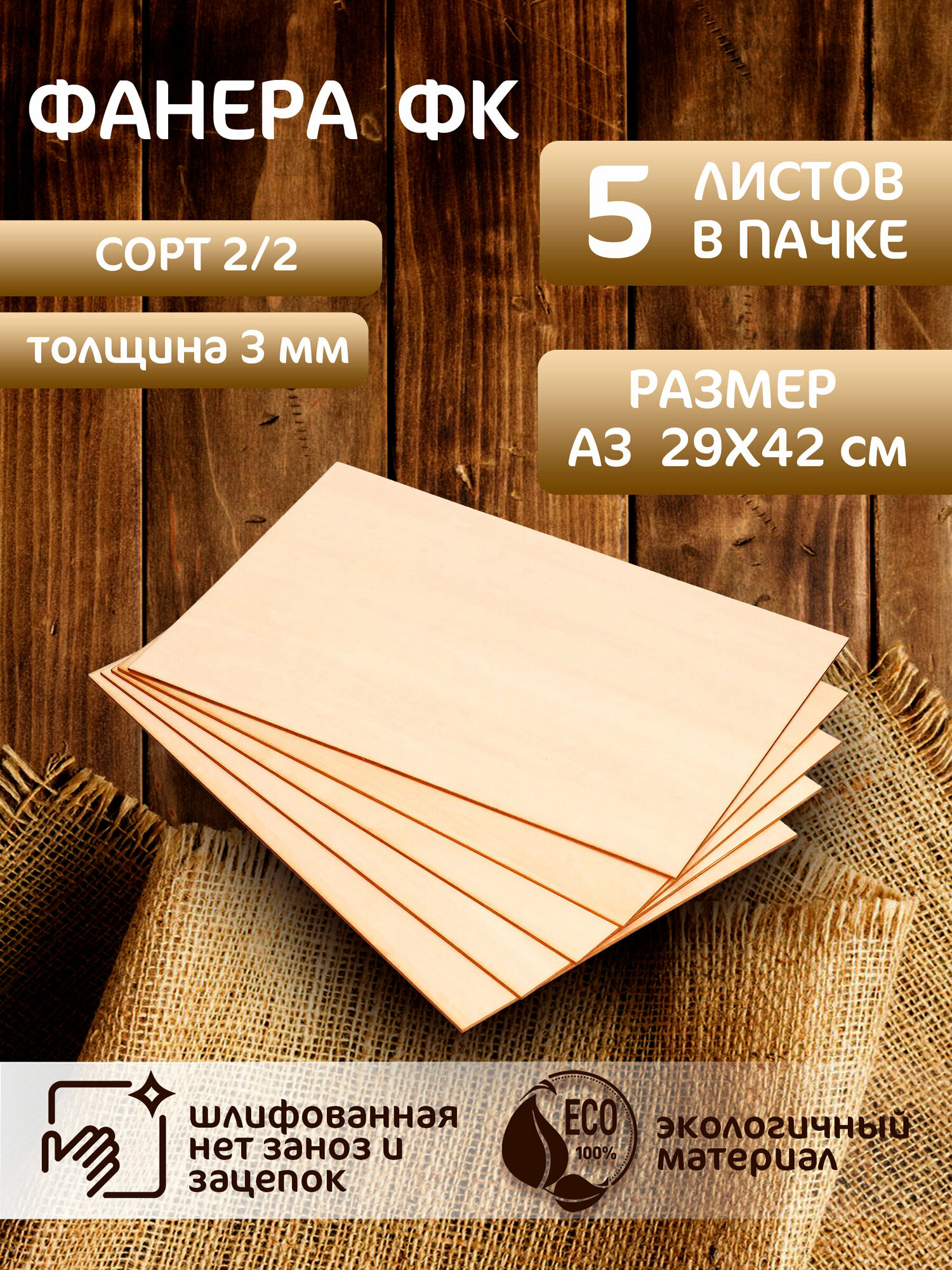 Фанера шлифованная ФК 2/2 А3 5листов 3 мм Н-043 интересное: