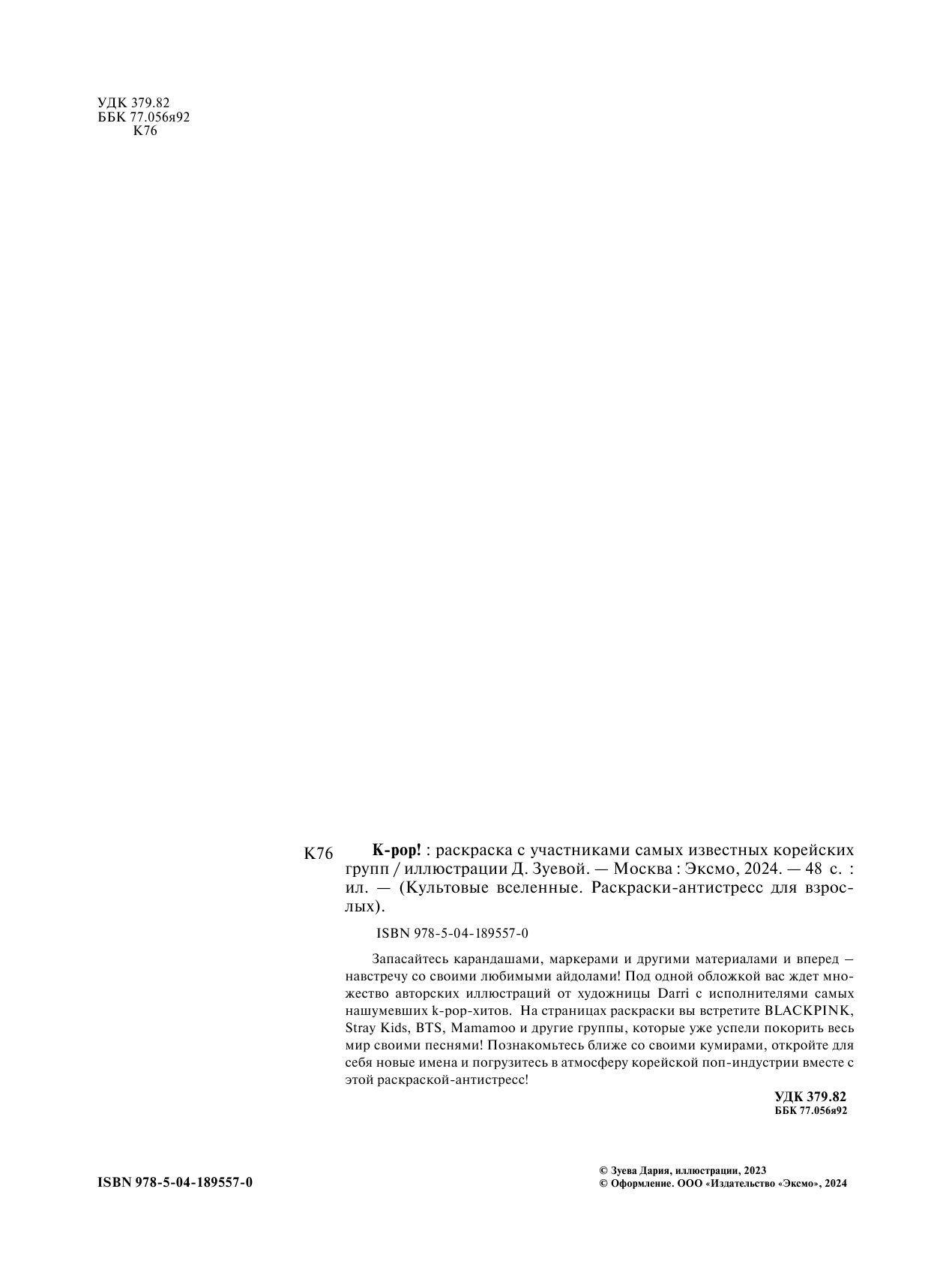 Зуева Д.И. K-pop! Раскраска с участниками самых известных корейских групп интересное: