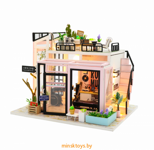 Купить Миниатюрная сборная модель (румбокс) "Музыкальная студия" с куполом и подсветкой