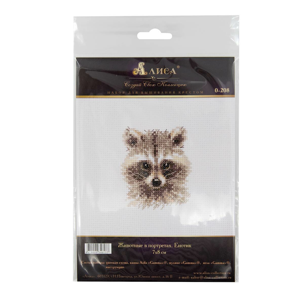 Набор для вышивания Алиса Животные в портретах. Енотик, 0-208, 7*8 см