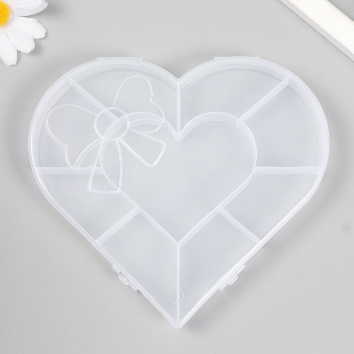 Купить Шкатулка пластик для мелочей "Сердце с бантиком" прозрачная 9 отделений 15,5х14х1,8 см
