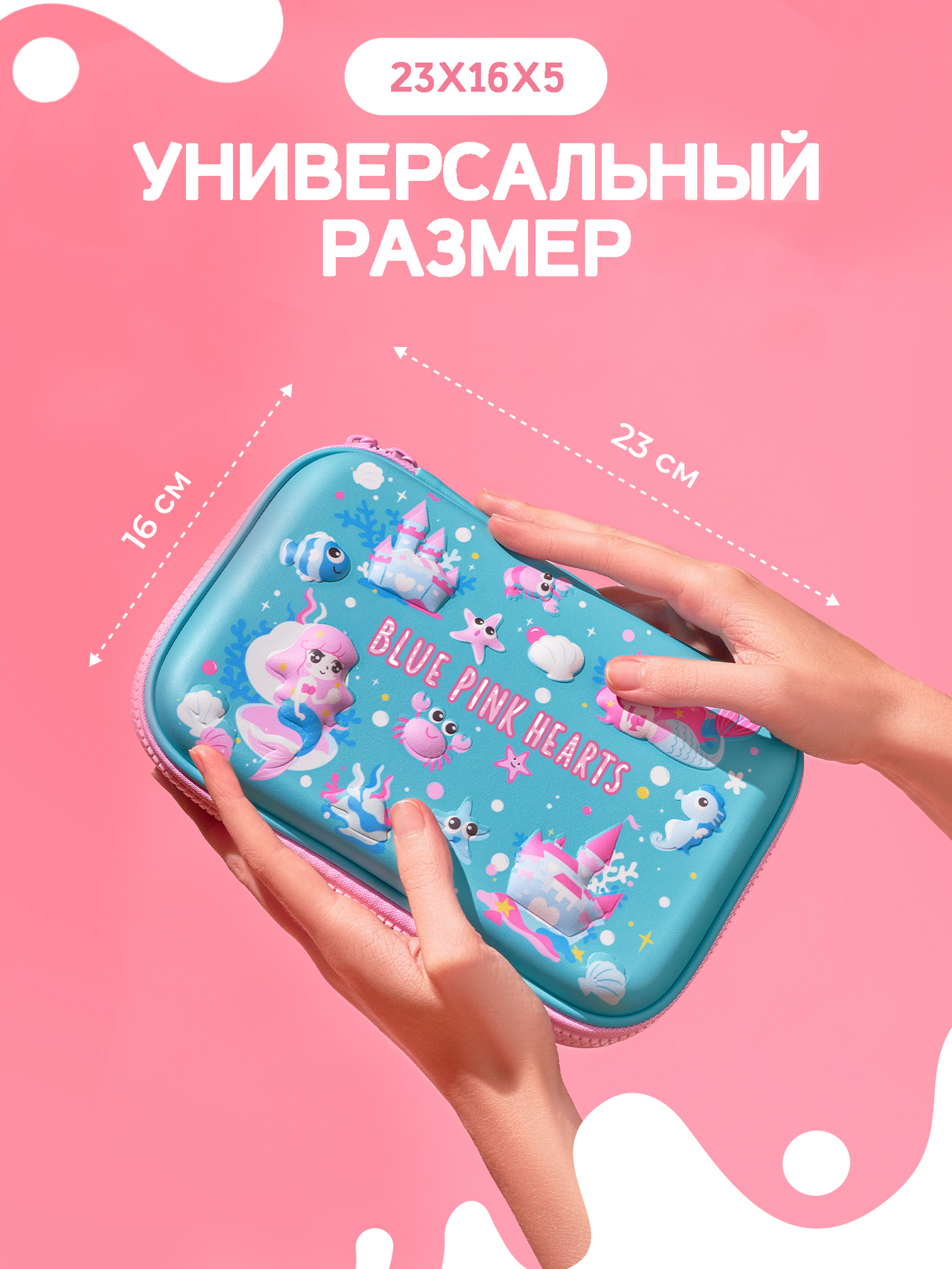 Пенал для школы BluePink Hearts с канцелярией, 25 предметов, голубой русалки интересное:
