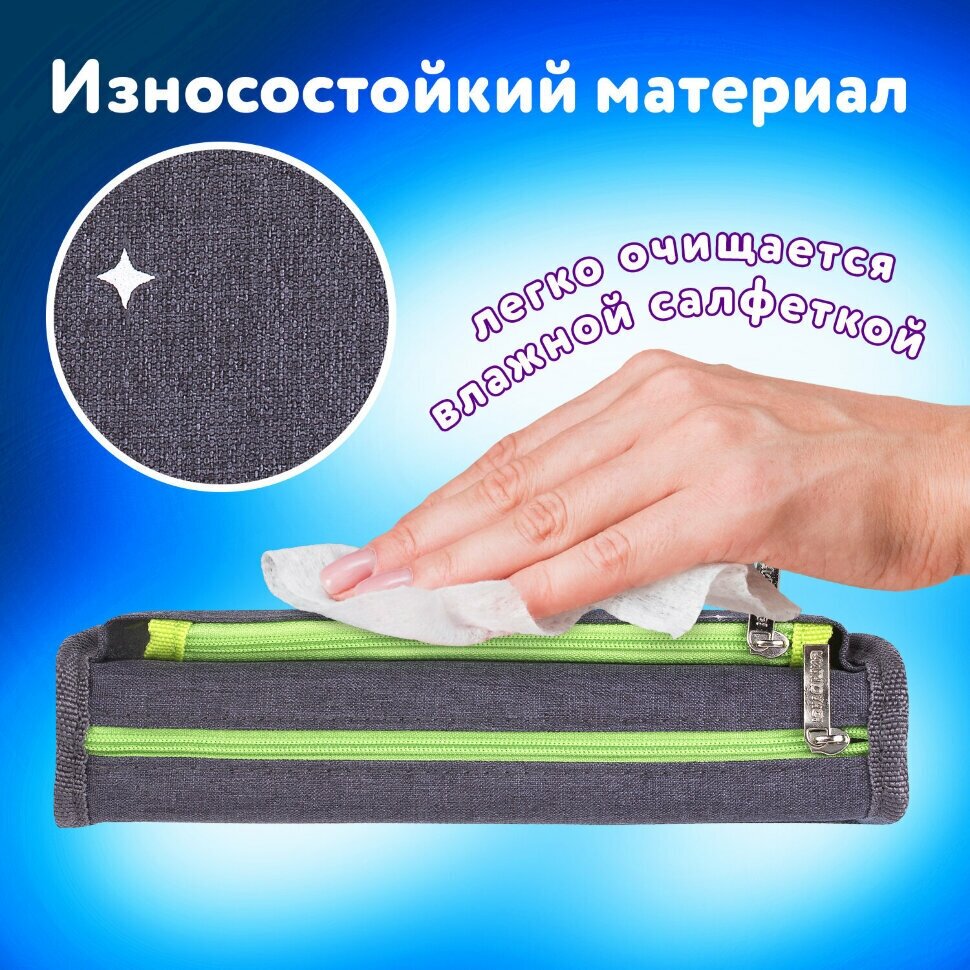 Пенал-косметичка школьный для ручек, карандашей Юнландия, 2 отделения, полиэстер, Cool Vibes, синий, 21х9х6 см, 271573