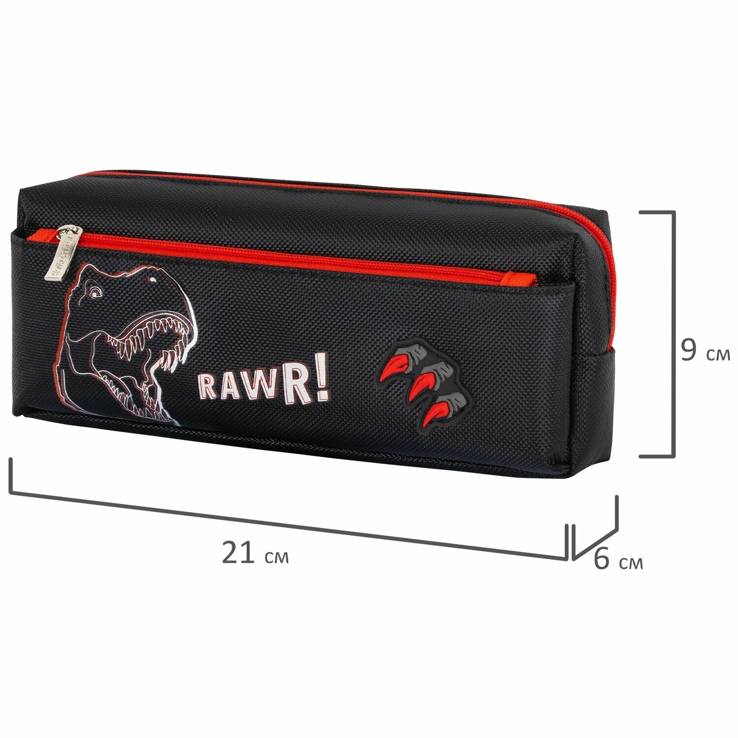 Купить Пенал мягкий Юнландия, 2 отделения, полиэстер, Roar, черный, 21х9х6 см, 272347