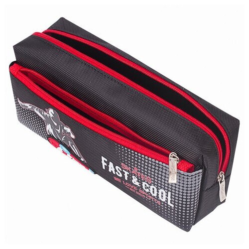 Пенал юнландия, 2 отделения, полиэстер, мягкий, "Speed car", черный, 21х6х9 см, 270273