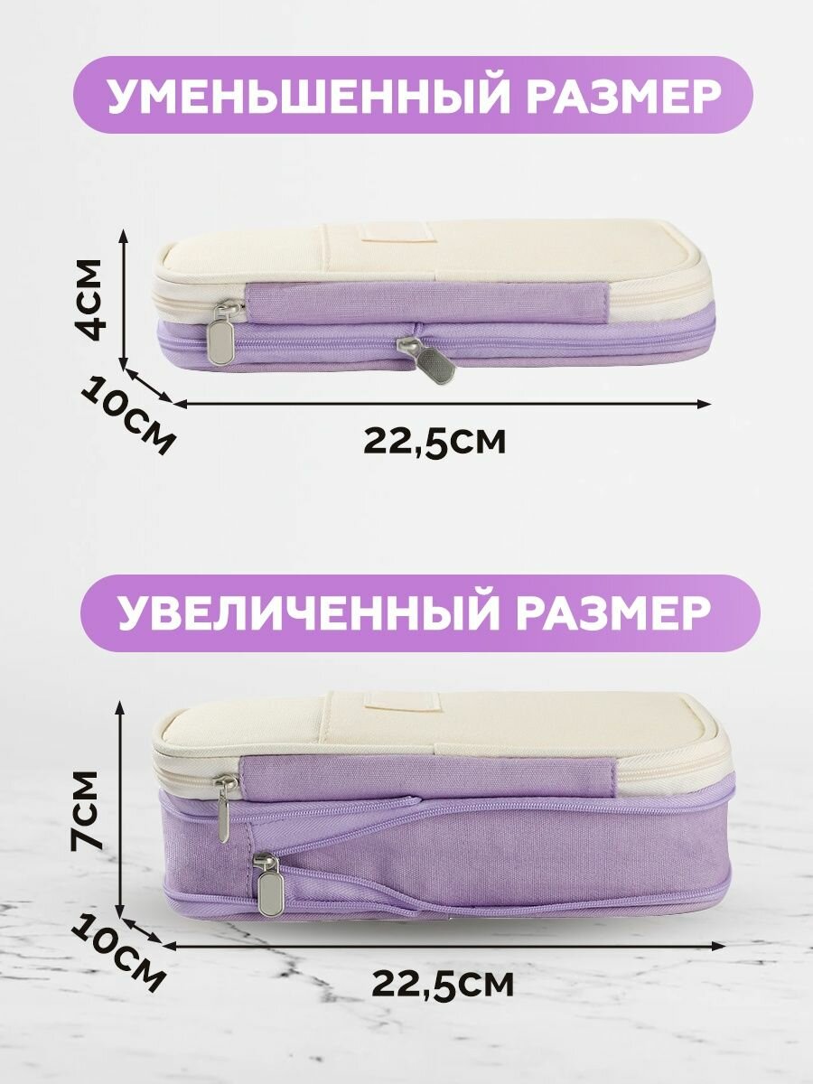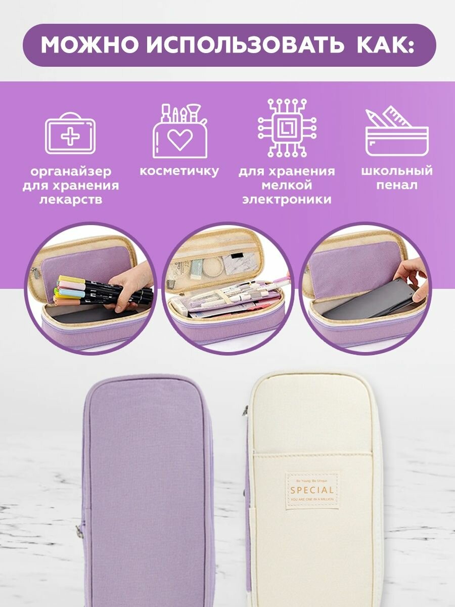 Пенал для девочек и мальчиков школьный большой с молнией, органайзер с отделениями в дорогу, фиолетовый интересное: