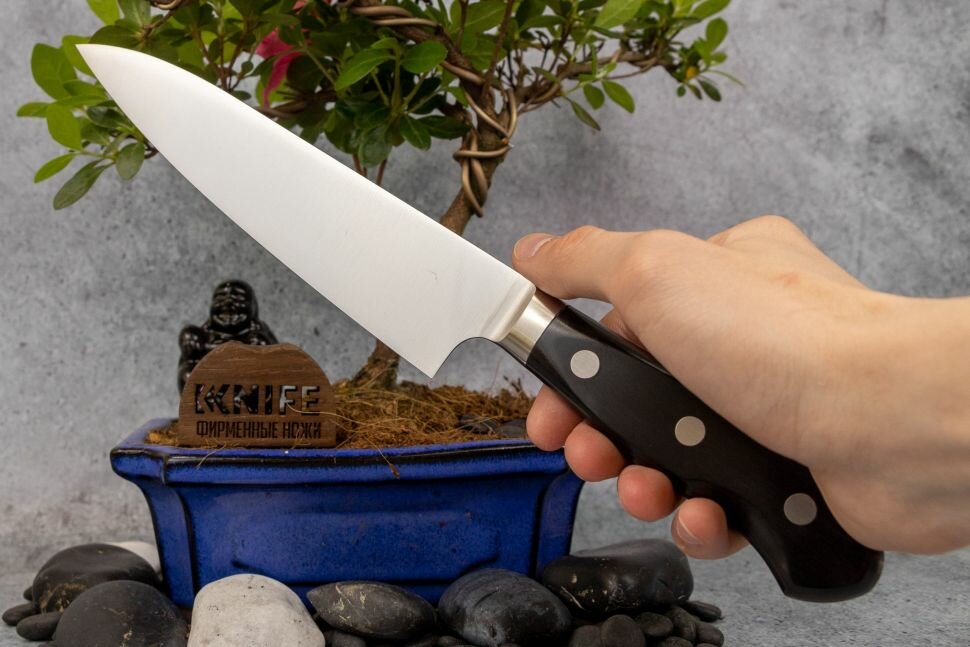 Нож Кухонный Поварской шеф Kanetsugu (7004), длина лезвия 18,0 см, сталь 1K6, рукоять ламинированное дерево, Япония