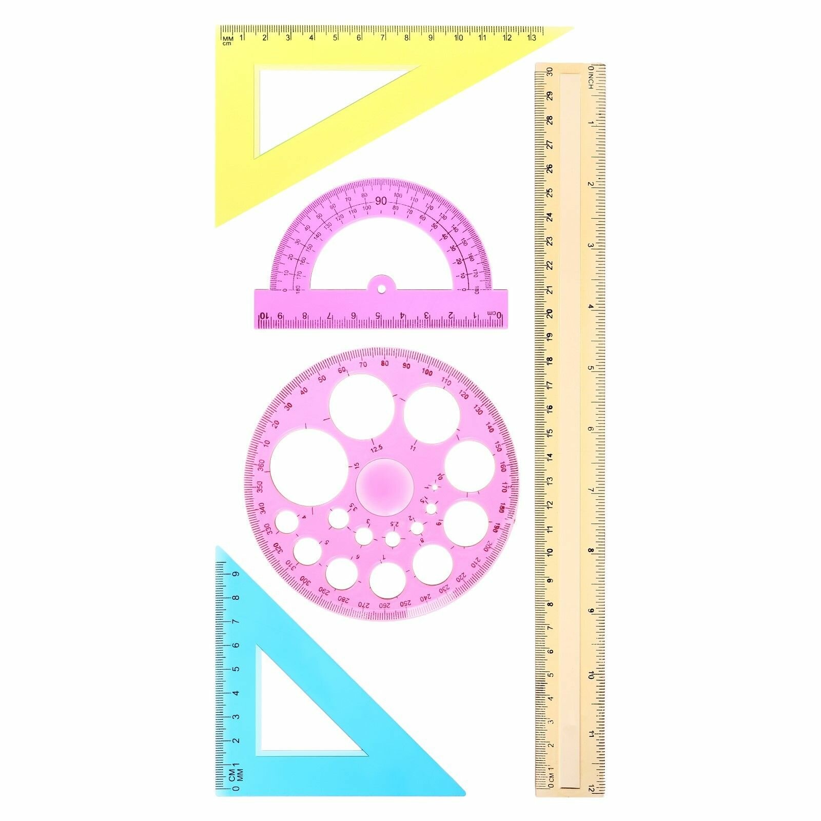 Набор геометрический (линейка-30см+2 угольника+транспортир+трафарет окружности) микс 540590 интересное: