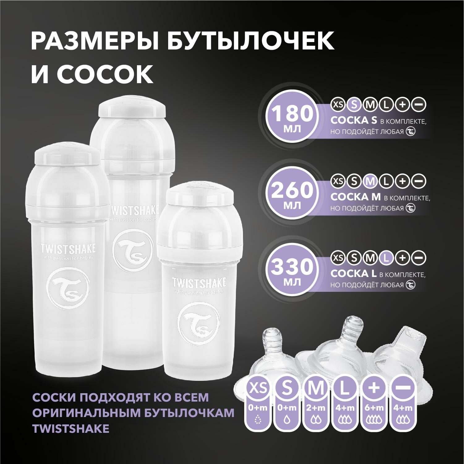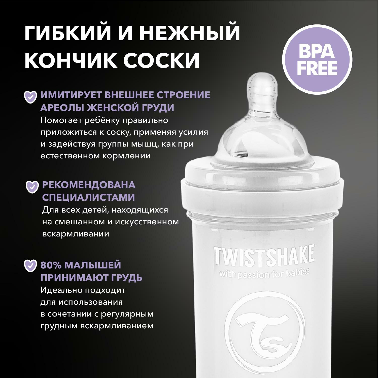 Детская антиколиковая бутылочка Twistshake для кормления, белая, 180 мл, от 0 мес, подарок 2 пустышки