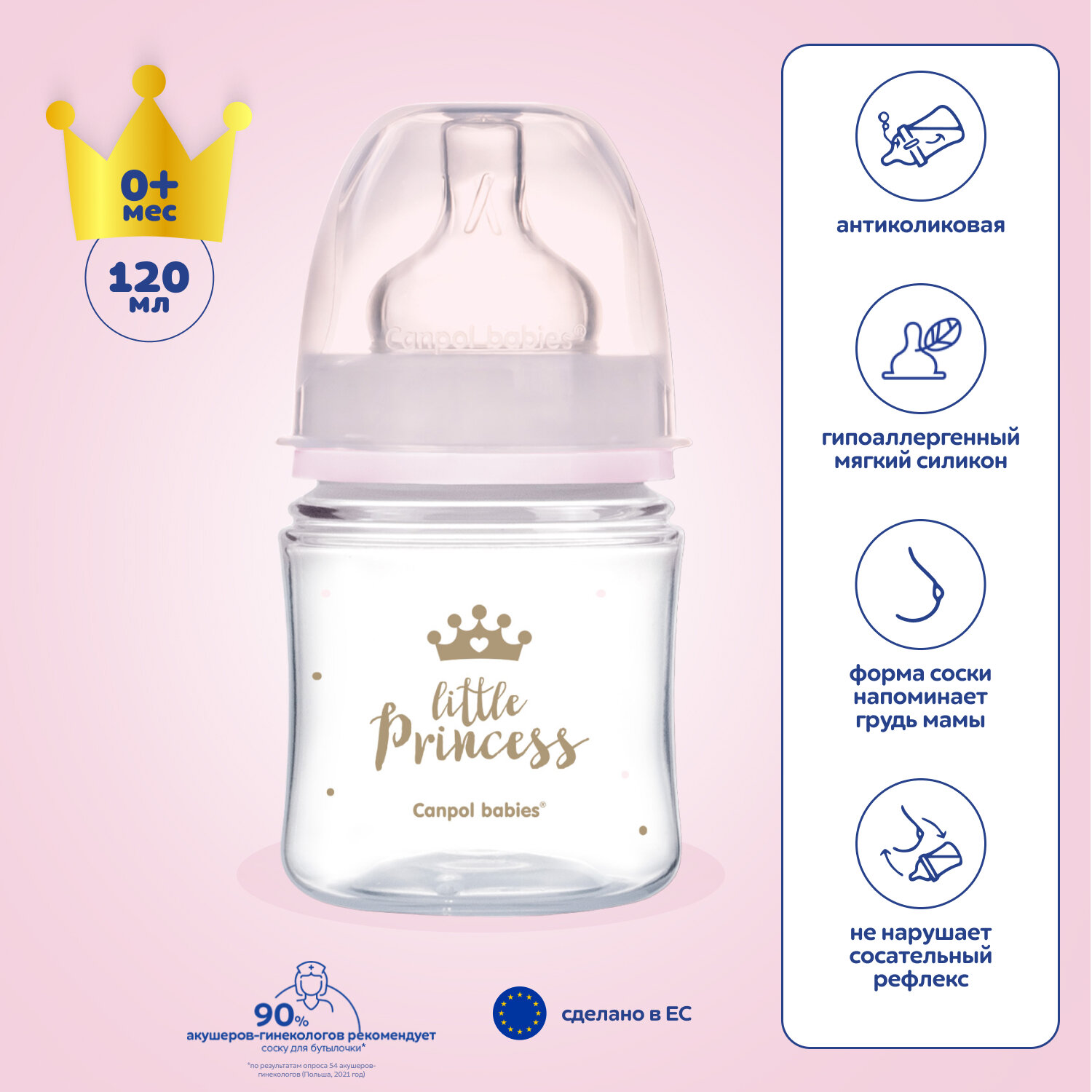 Бутылочка для кормления Canpol babies Royal Baby широкое горлышко, 0 мес+, розовая, 120 мл интересное: