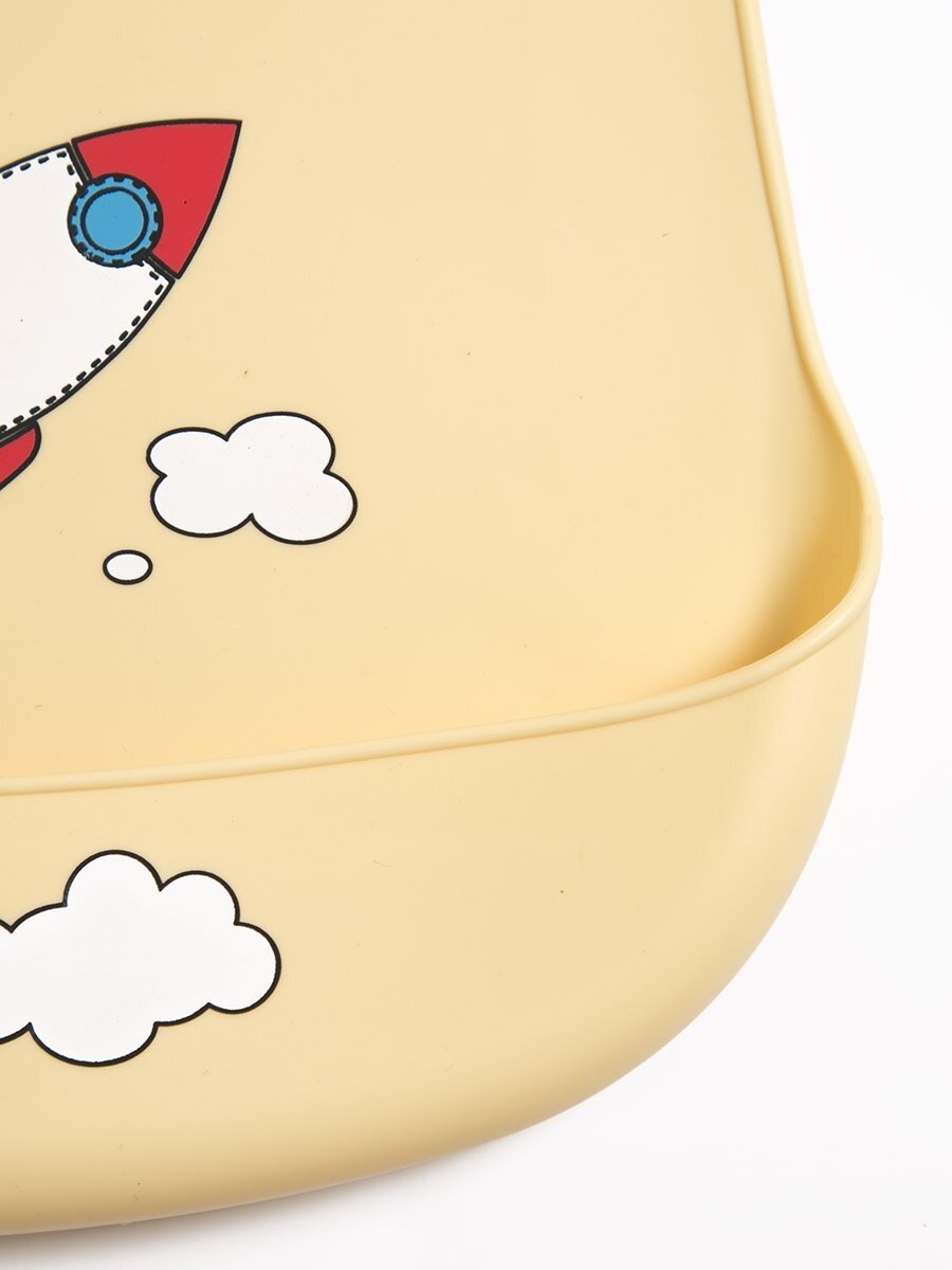 Купить Нагрудник для кормления детский силиконовый с кармашком, детский слюнявчик регулируемый, Baby Nice, 21х28, "Ракета", бежевый
