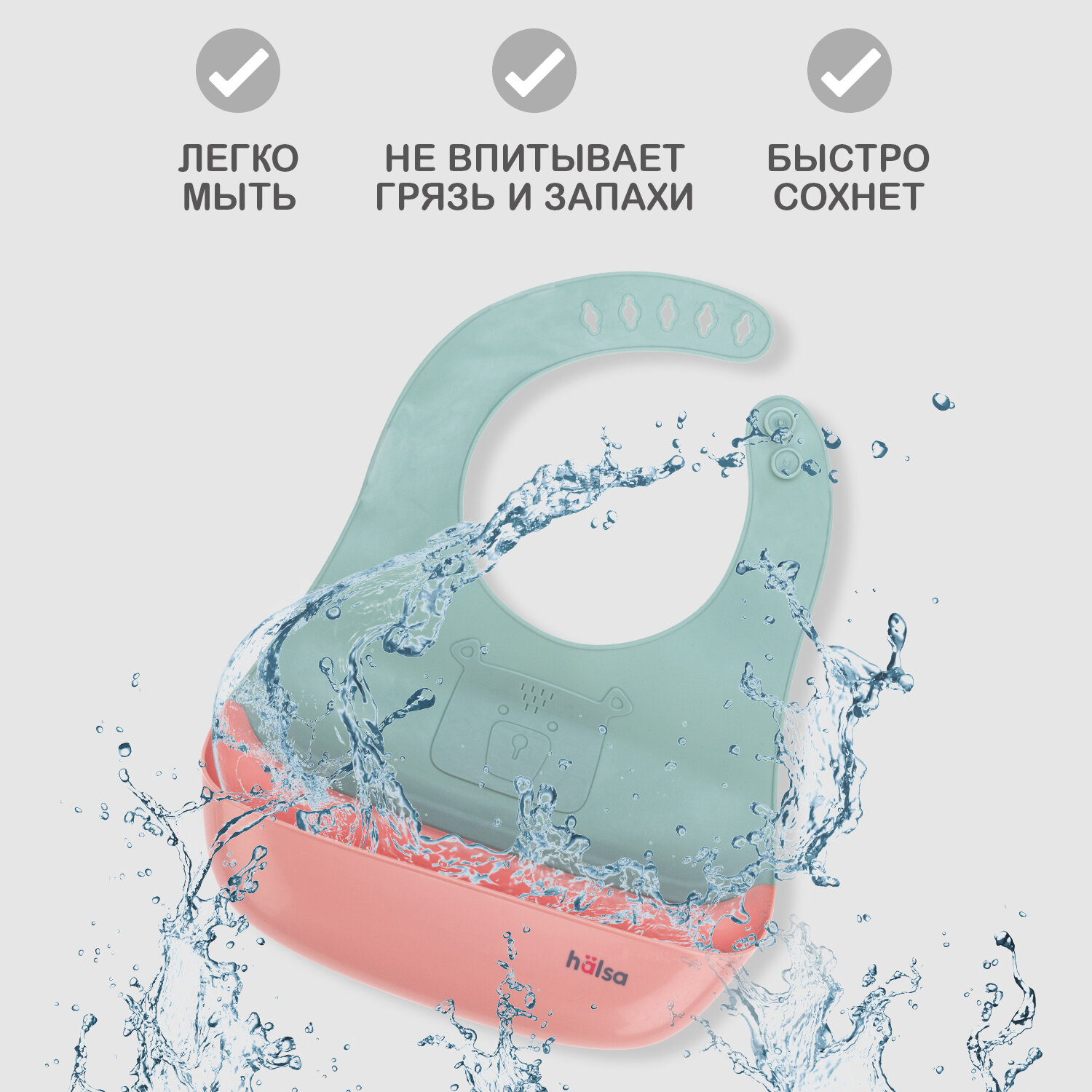 Купить Слюнявчик силиконовый для кормления, нагрудник детский с карманом Halsa
