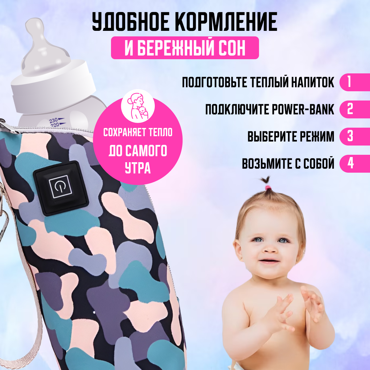 Подогреватель портативный с USB (камуфляж) для детских бутылочек/для смеси и воды/в машину/на прогулку, Master-Pokupok интересное: