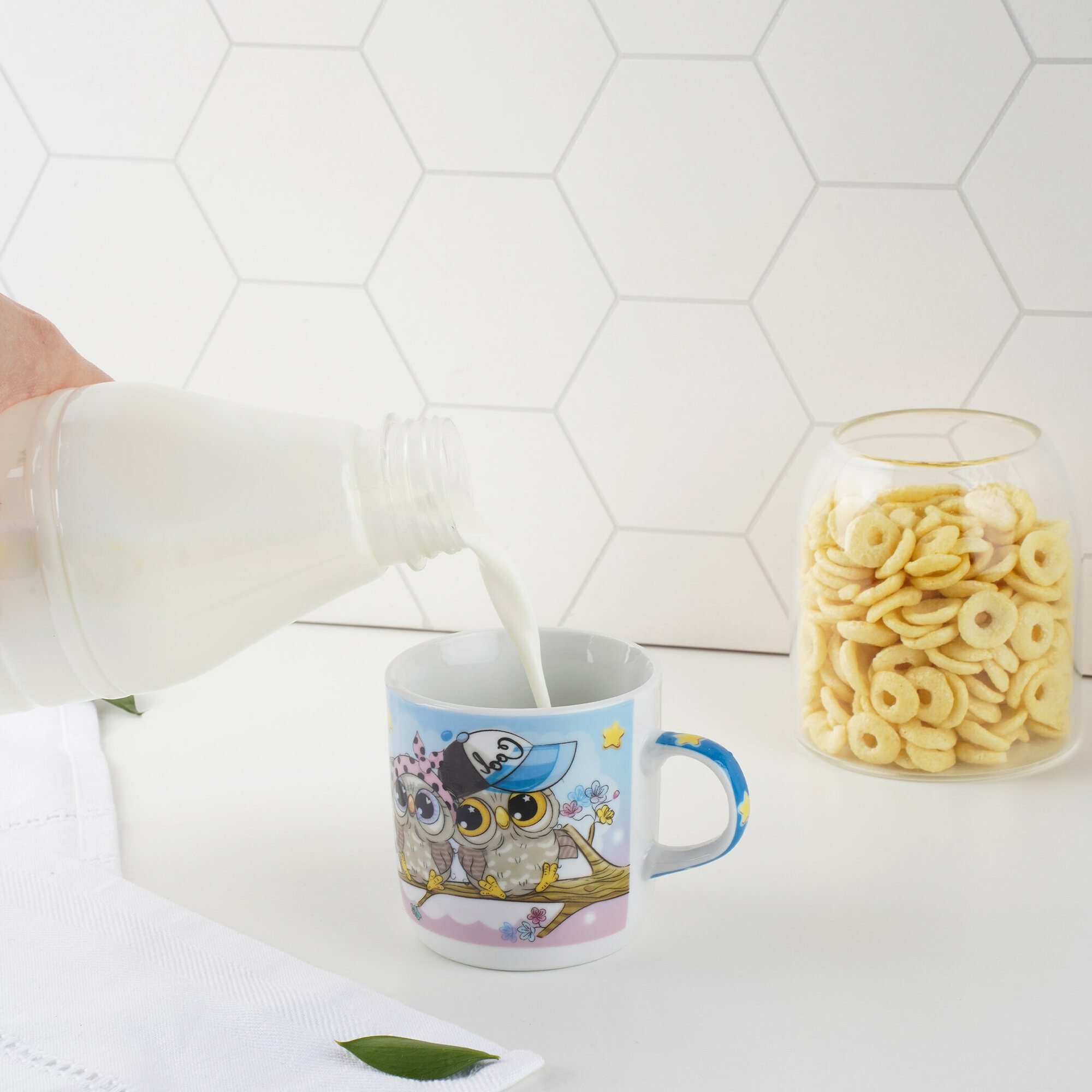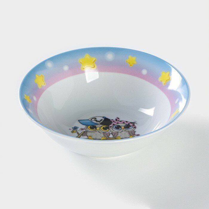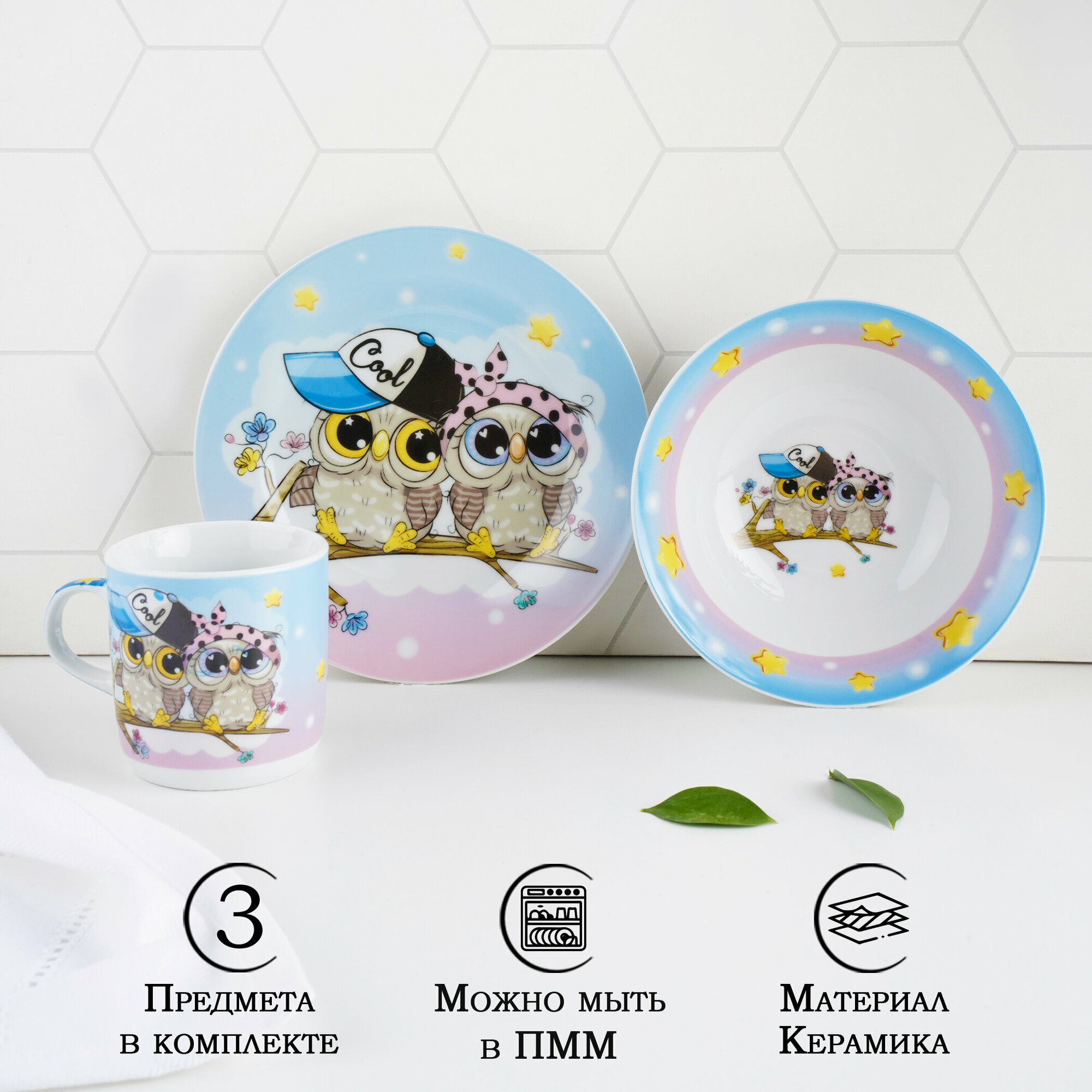 Набор детской посуды из керамики Доляна «Совы тинейджеры», 3 предмета: кружка 230 мл, миска 400 мл, тарелка d=18 см