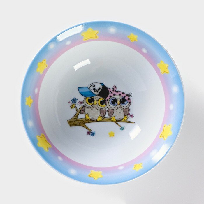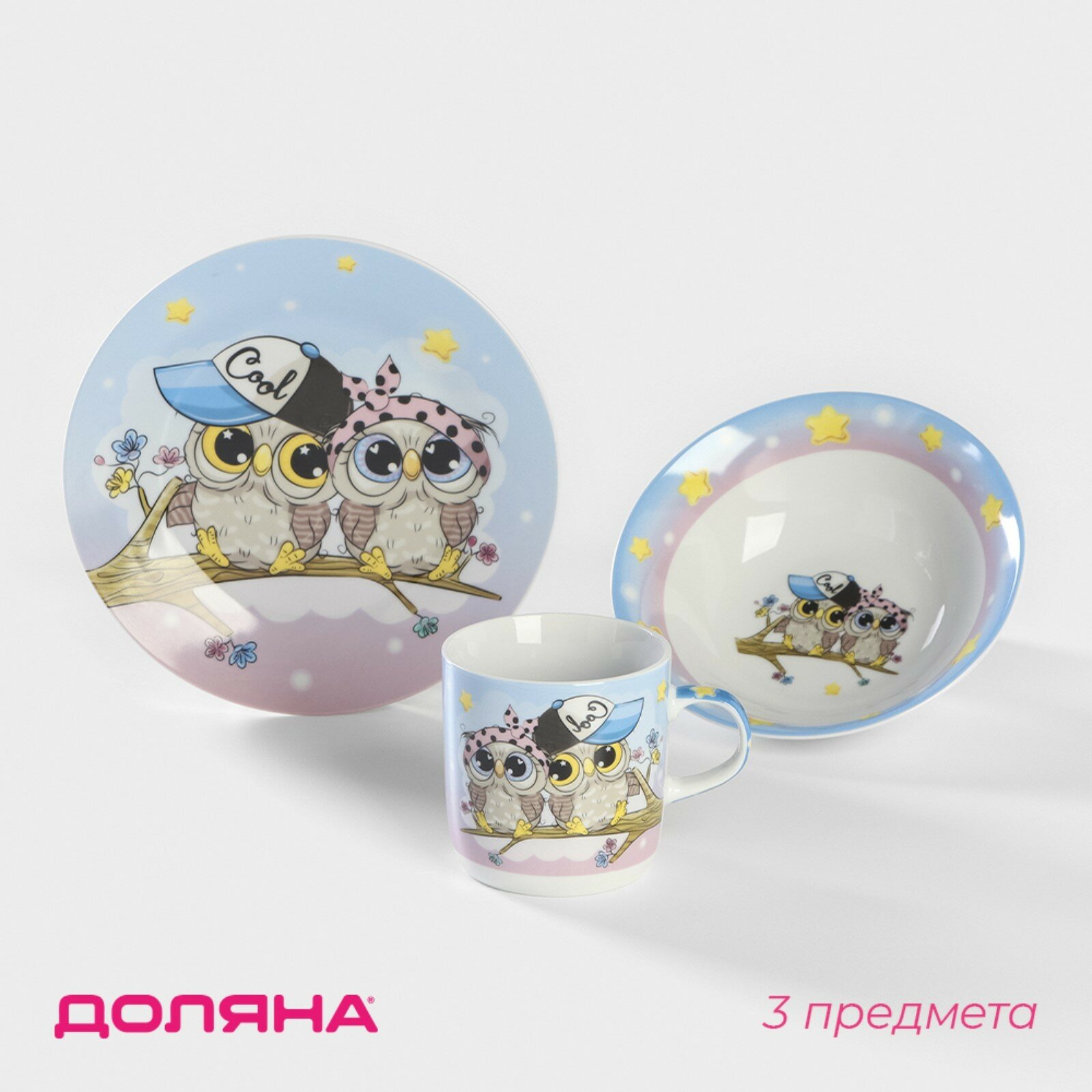 Набор детской посуды Доляна «Совы тинейджеры», 3 предмета: кружка 230 мл, миска 400 мл, тарелка 18 см
