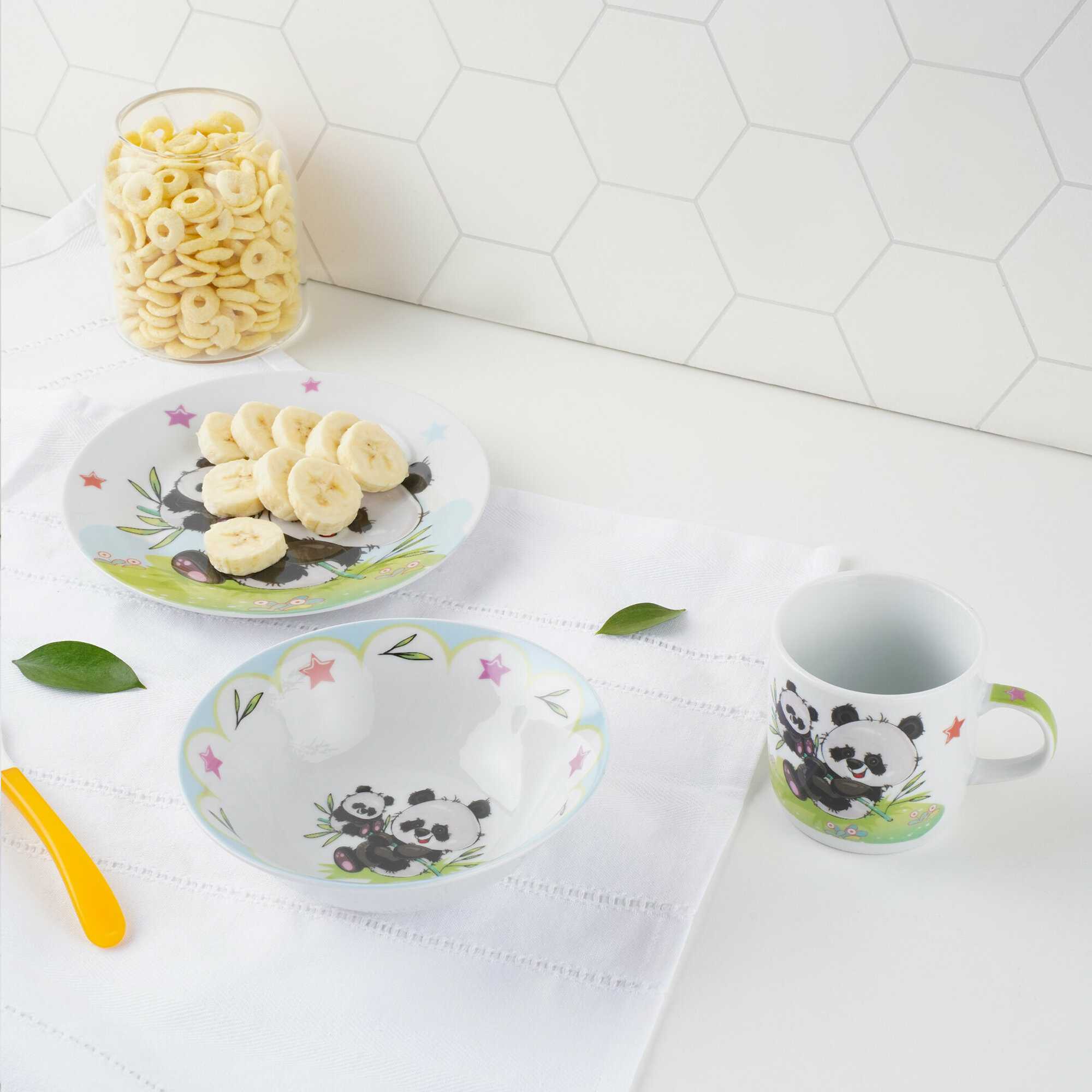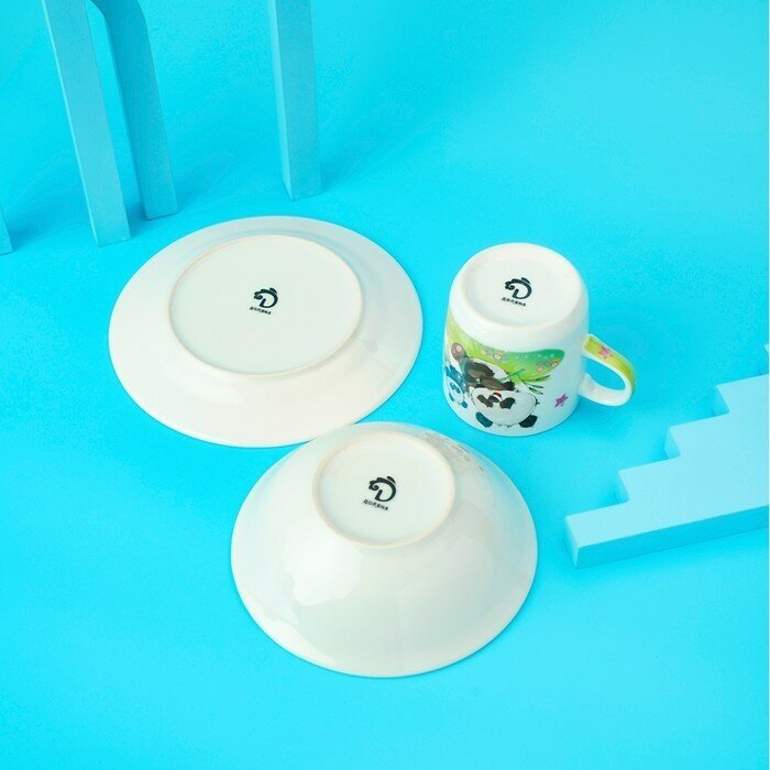 Набор детской посуды Доляна "Семья пандочек", 3 предмета: кружка 230 мл, миска 400 мл, тарелка 18 см