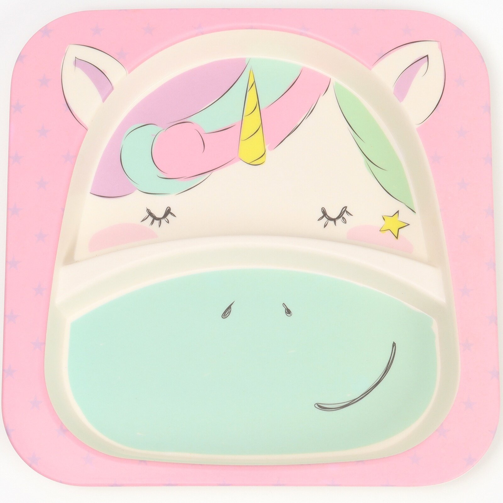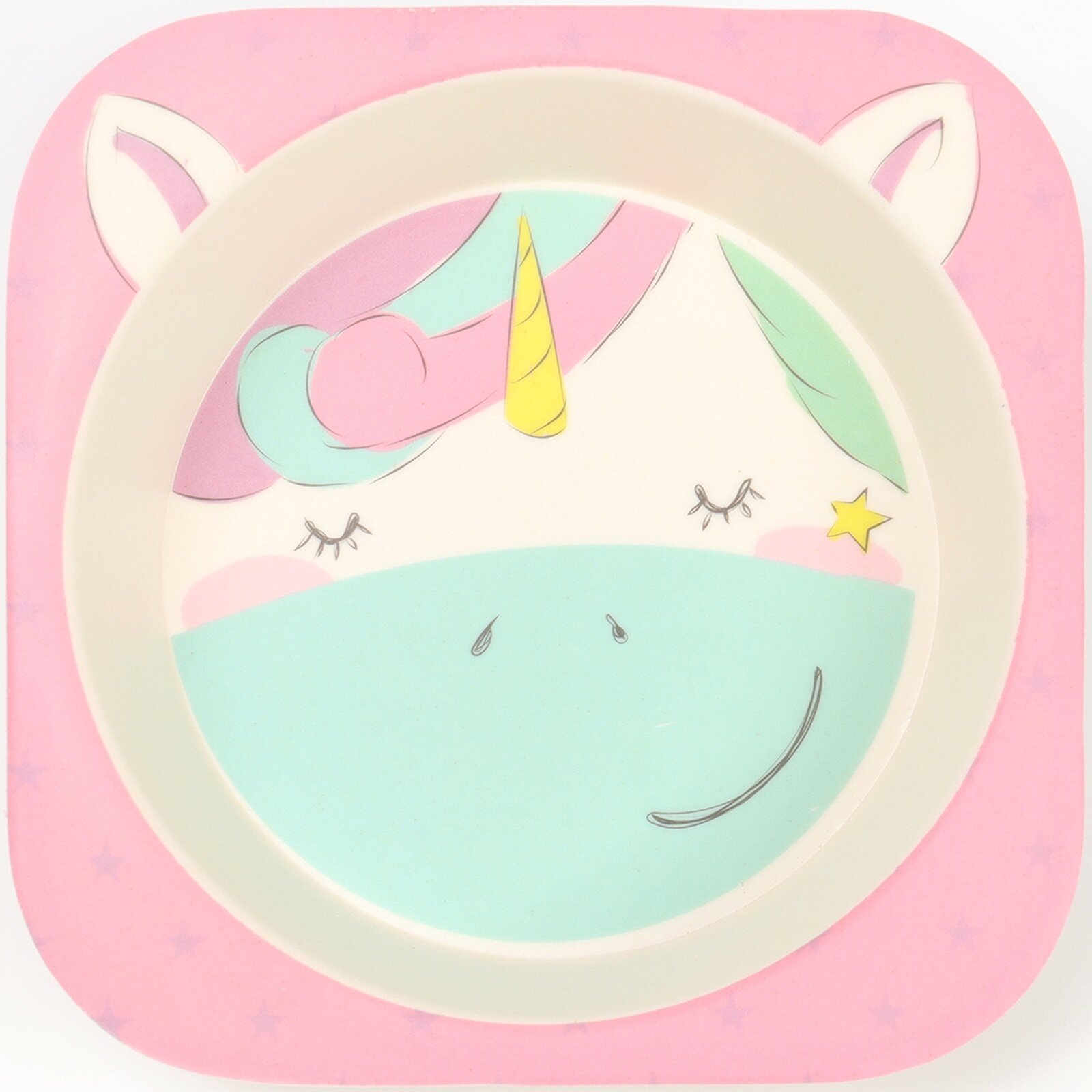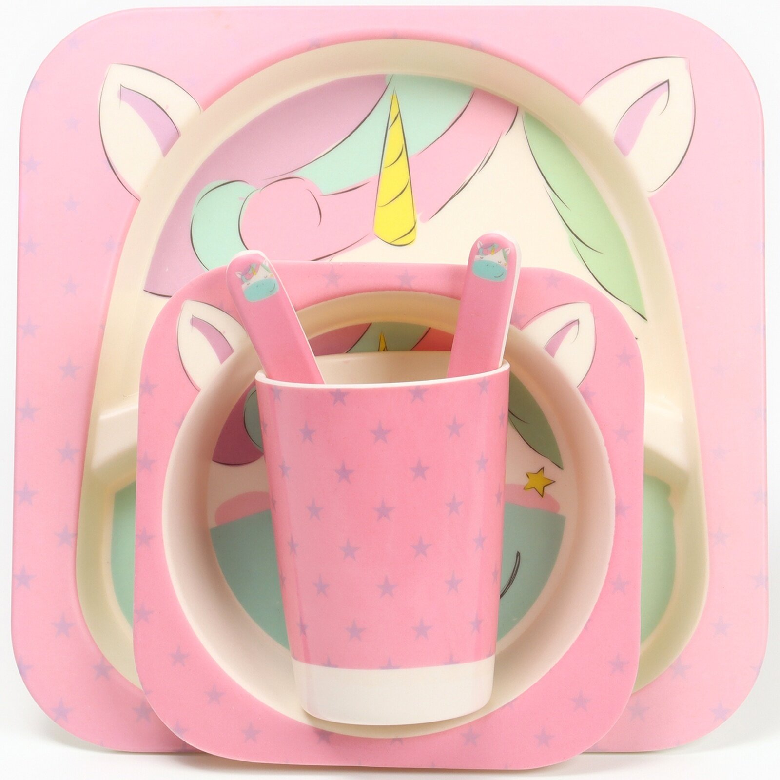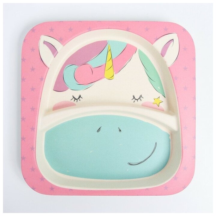 Купить Набор бамбуковой посуды «Единорожка», тарелка, миска, стакан, приборы, 5 предметов