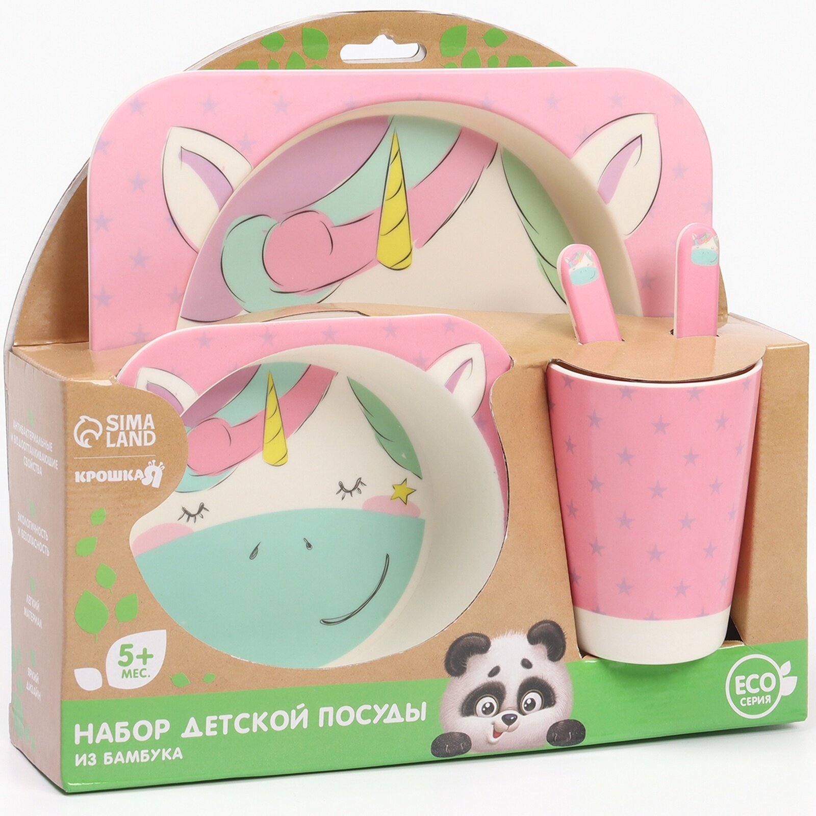 Набор бамбуковой посуды «Единорожка», тарелка, миска, стакан, приборы, 5 предметов интересное: