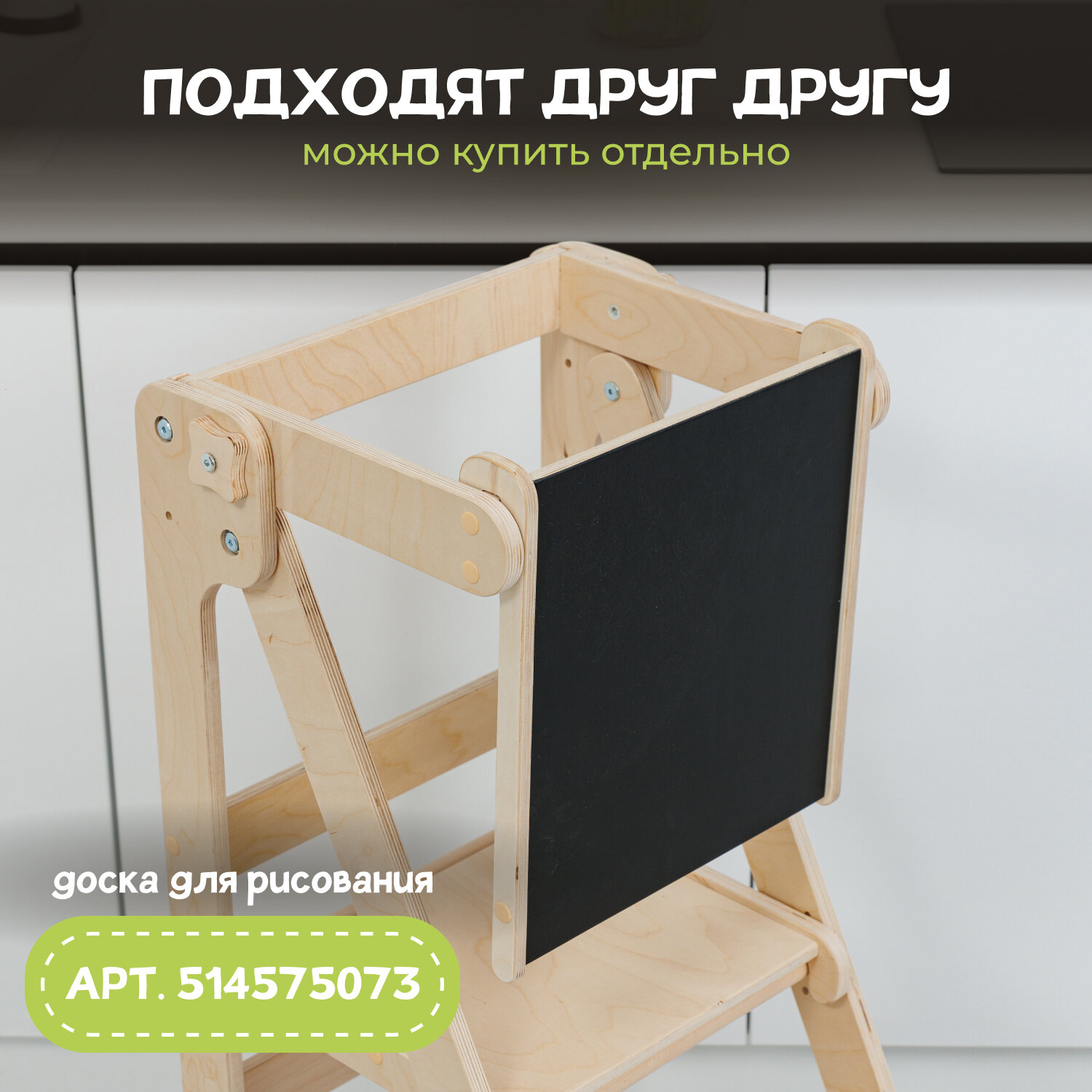 Башня помощника Монтессори "Комфорт" шлифованная + доска для рисования мелом/ ограничитель PAPPADO стульчик для кормления