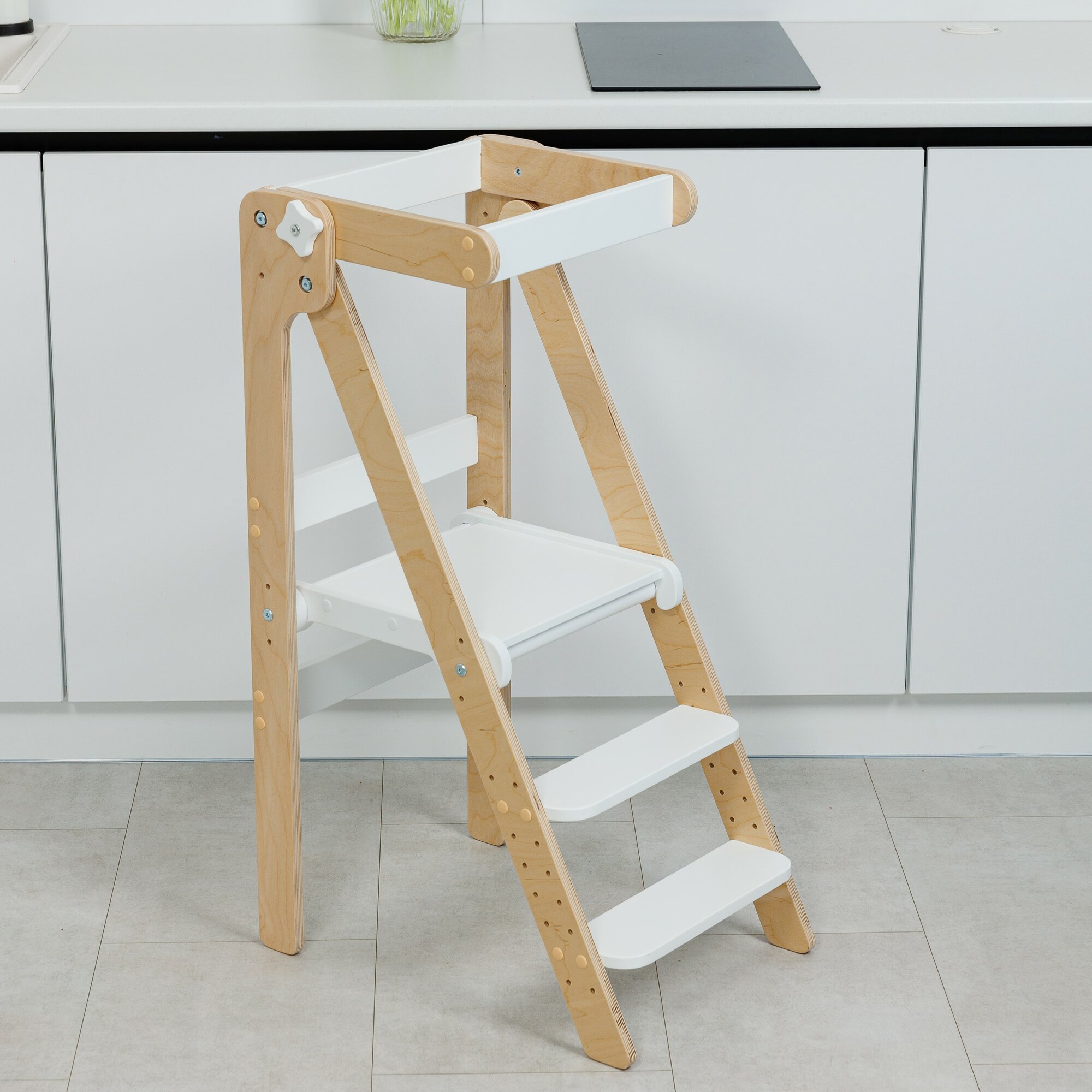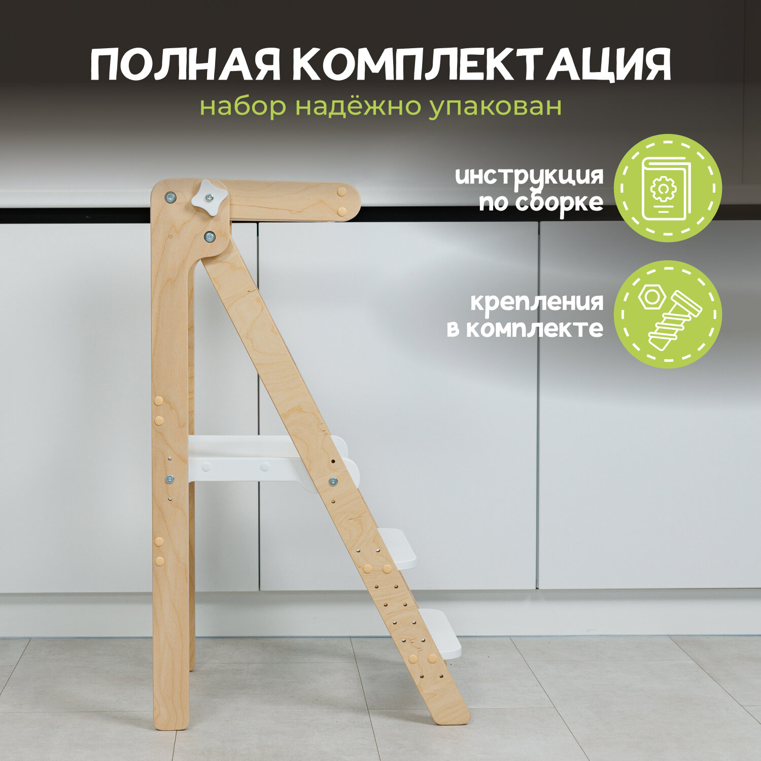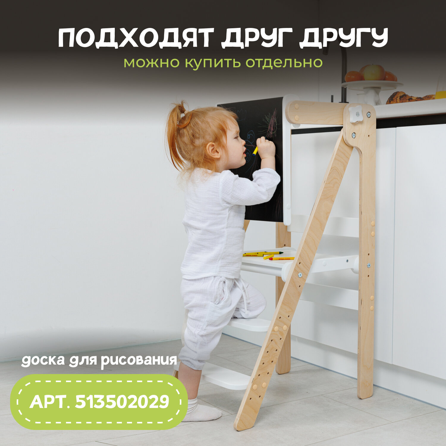 Башня помощника Монтессори "Комфорт" шлифованная + доска для рисования мелом/ ограничитель PAPPADO стульчик для кормления