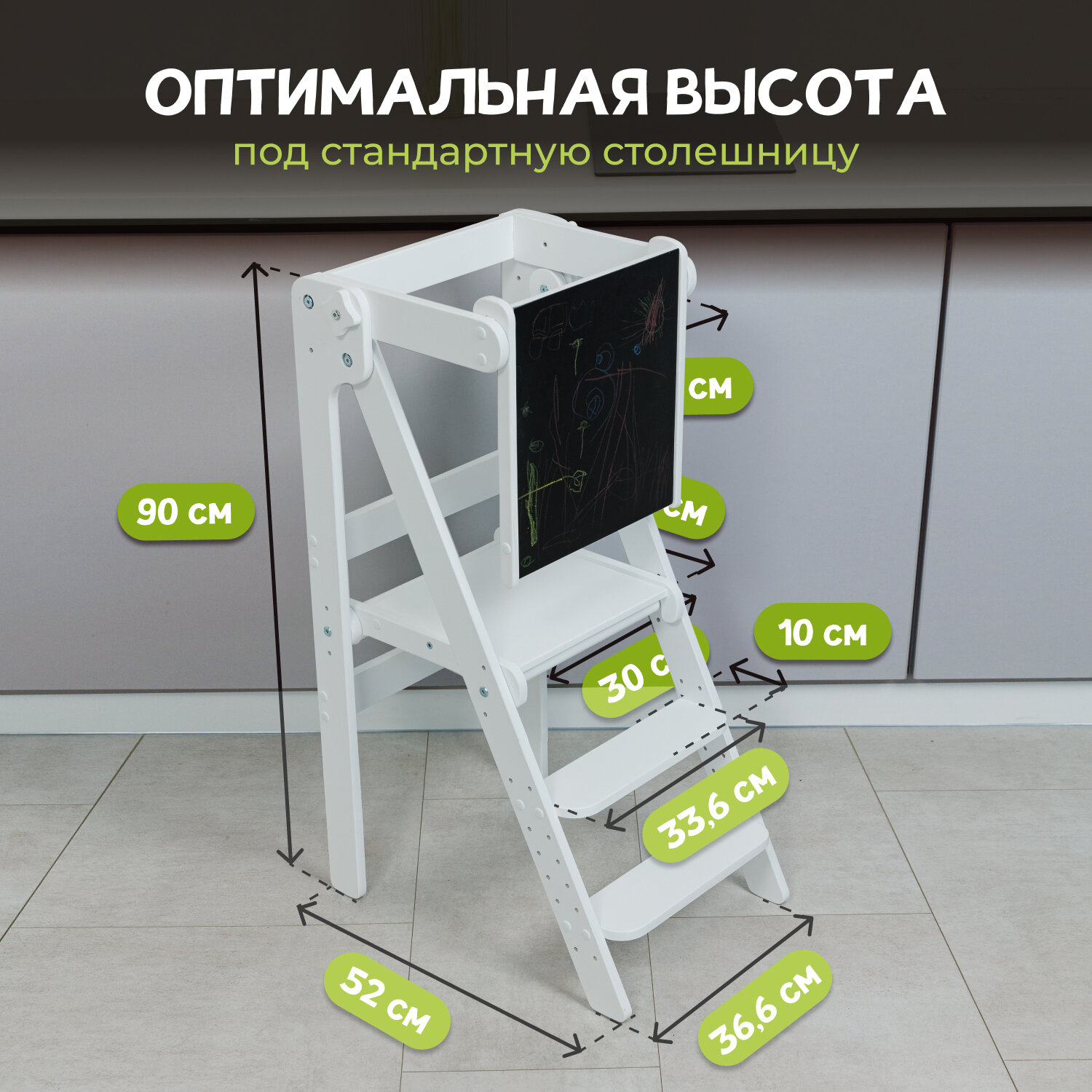 Купить Башня помощника Монтессори "Комфорт" белая + доска для рисования мелом/ ограничитель PAPPADO стульчик для кормления