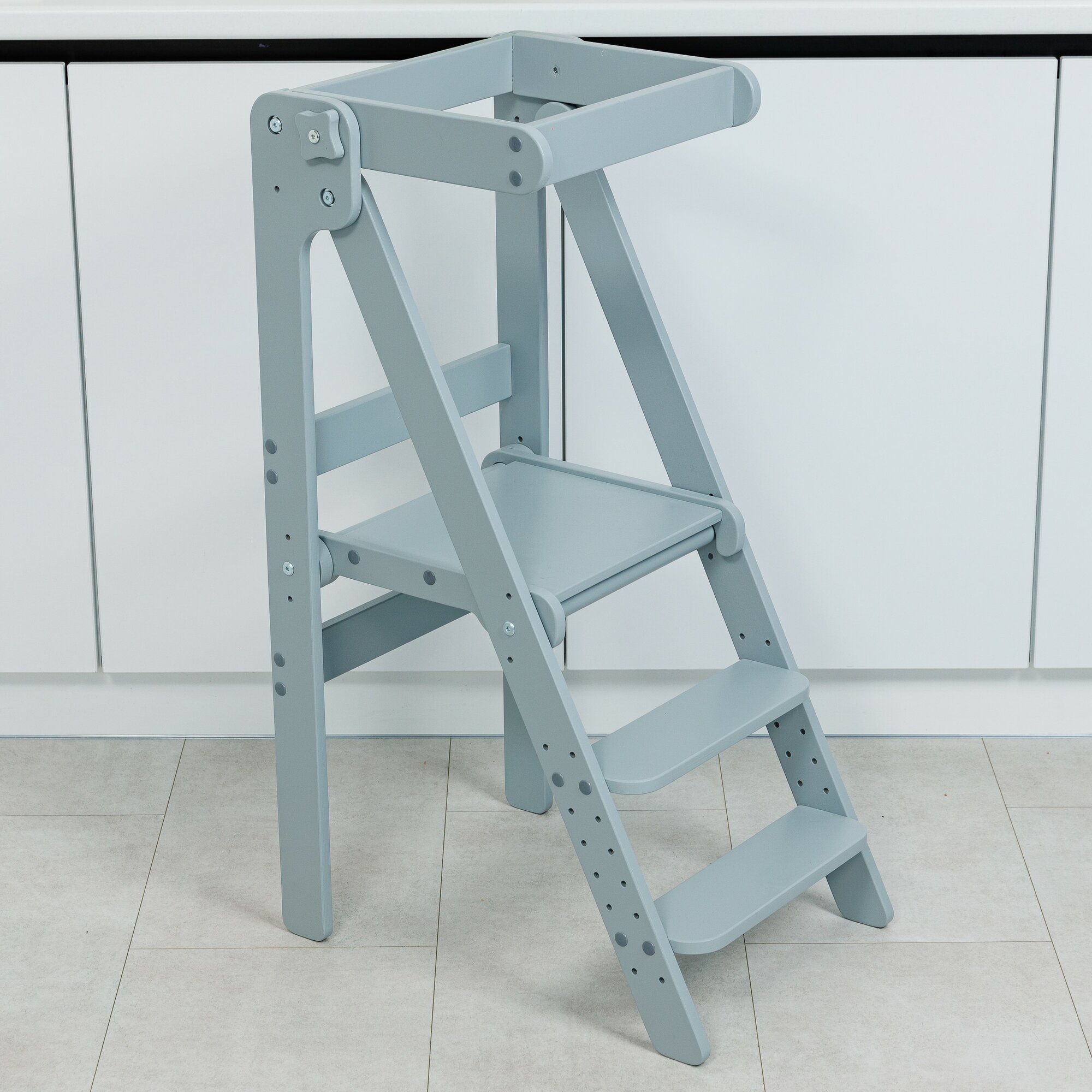 Детская башня помощника Монтессори "Комфорт" серо-белая PAPPADO