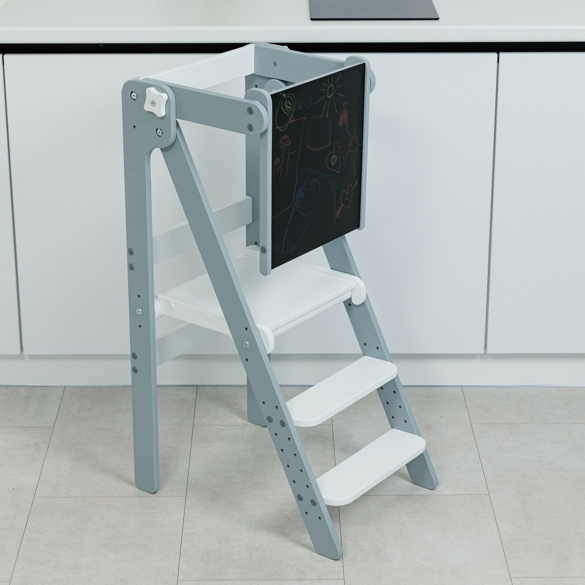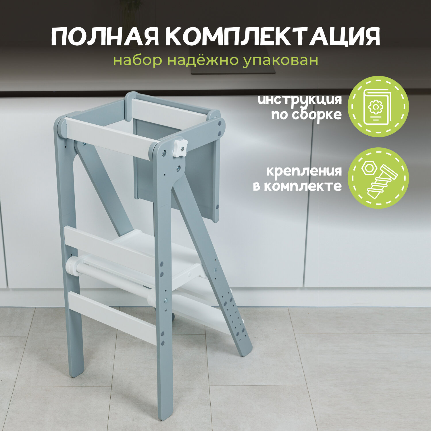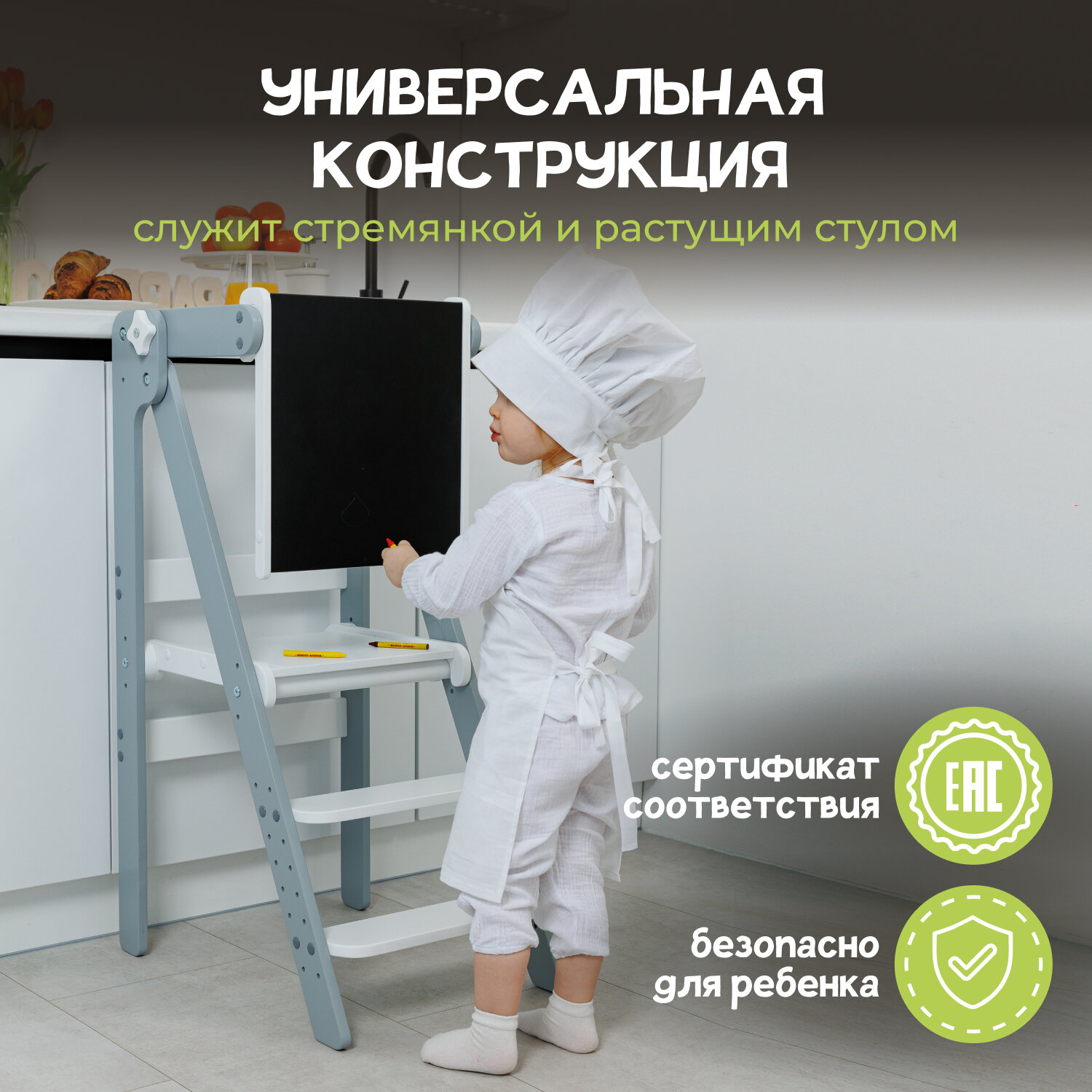 Купить Башня помощника Монтессори "Комфорт" серо -белая + доска для рисования мелом/ ограничитель PAPPADO стульчик для кормления