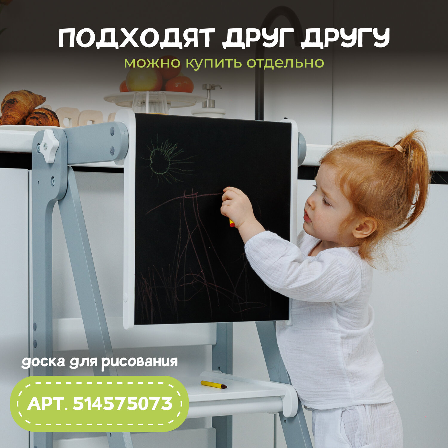 Башня помощника Монтессори "Комфорт" серо -белая + доска для рисования мелом/ ограничитель PAPPADO стульчик для кормления