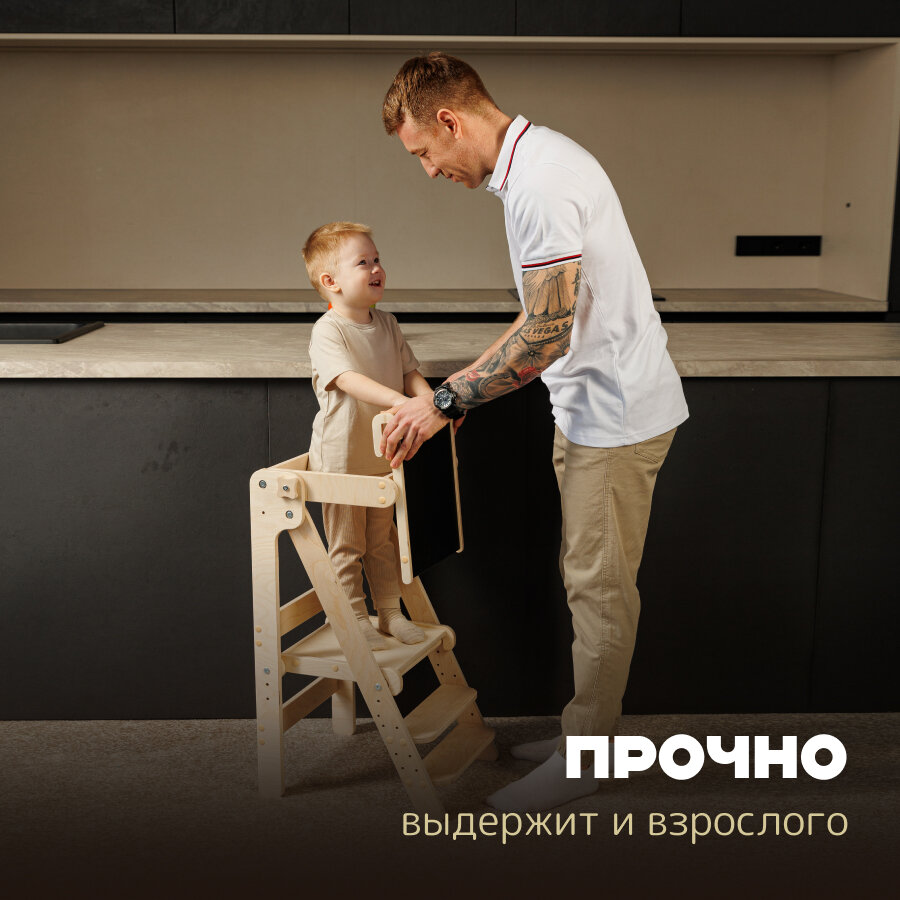 Башня помощника Монтессори "Я сам" шлифованный с доской PAPPADO стульчик для кормления