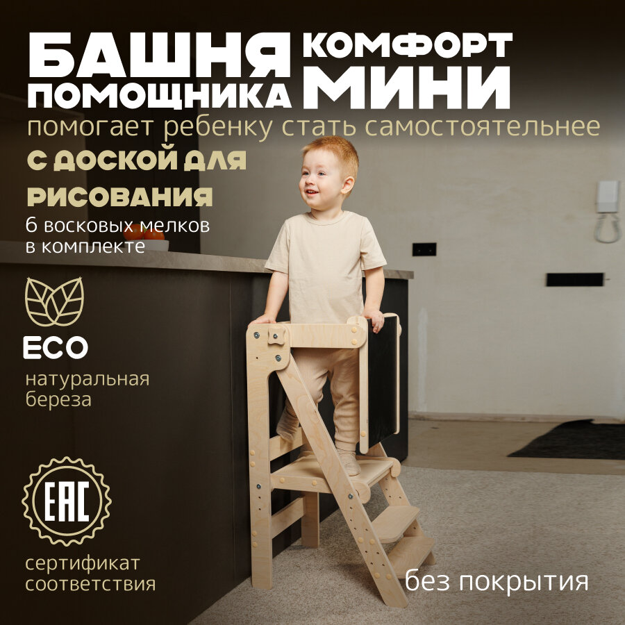 Купить Башня помощника Монтессори "Комфорт Мини" шлифованный с доской PAPPADO стульчик для кормления