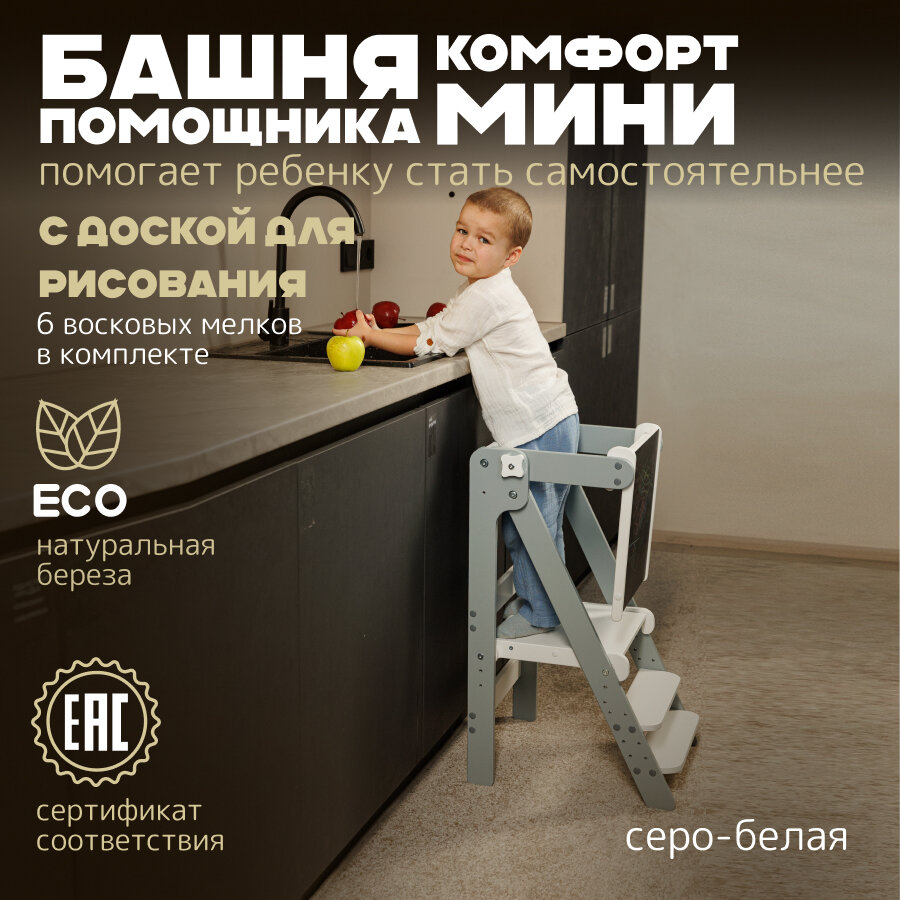 Купить Башня помощника Монтессори "Комфорт Мини серо-белый с доской PAPPADO стульчик для кормления