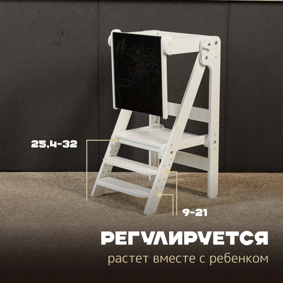 Башня помощника Монтессори "Комфорт Мини белый+лак с доской PAPPADO стульчик для кормления