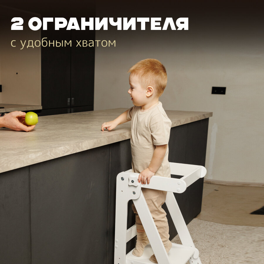Башня помощника Монтессори "Я сам" с доской-ограничителем белый+лак PAPPADO стульчик для кормления