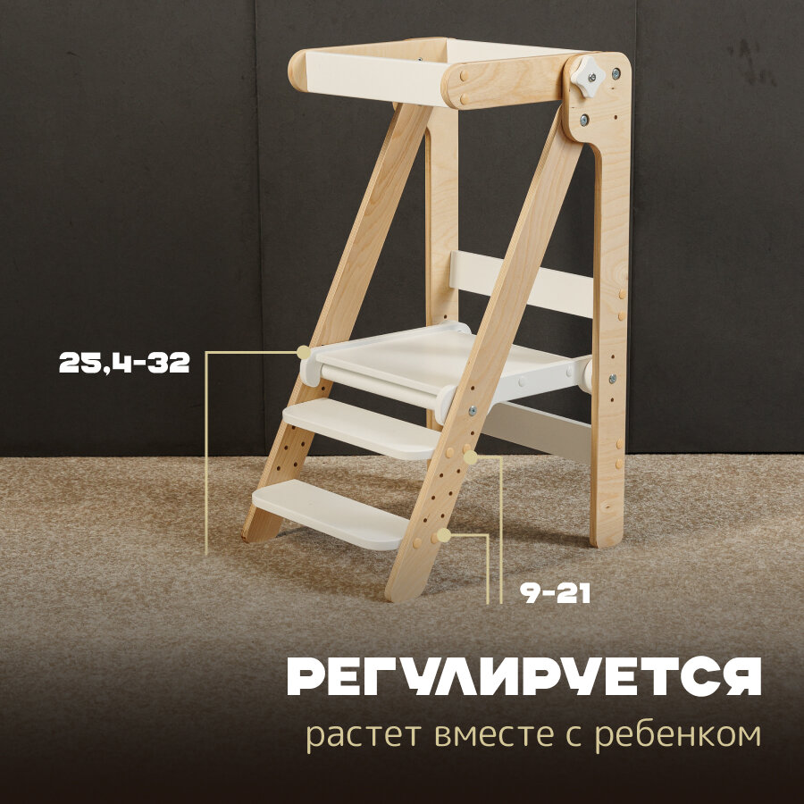 Башня помощника Монтессори "Я сам" белый+лак с доской PAPPADO стульчик для кормления
