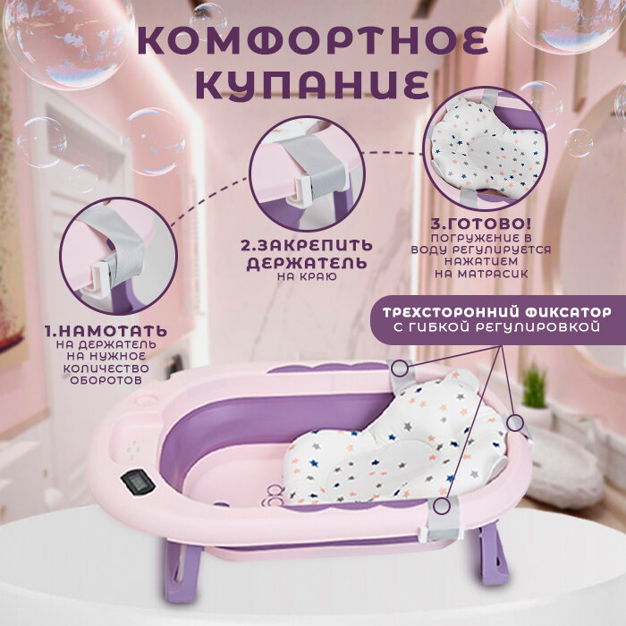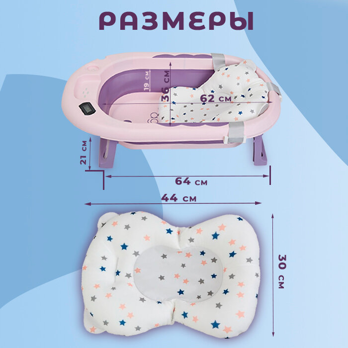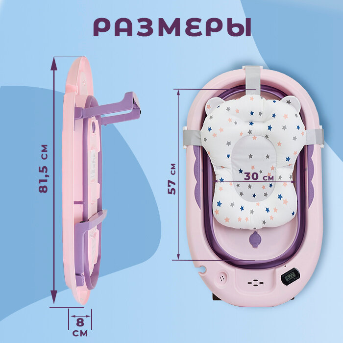 | Комплектация | встроенный термометр, матрасик, ковш для купания |