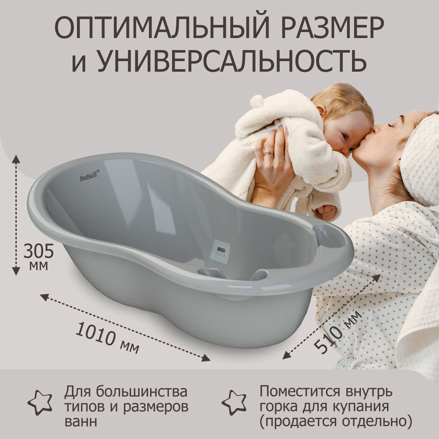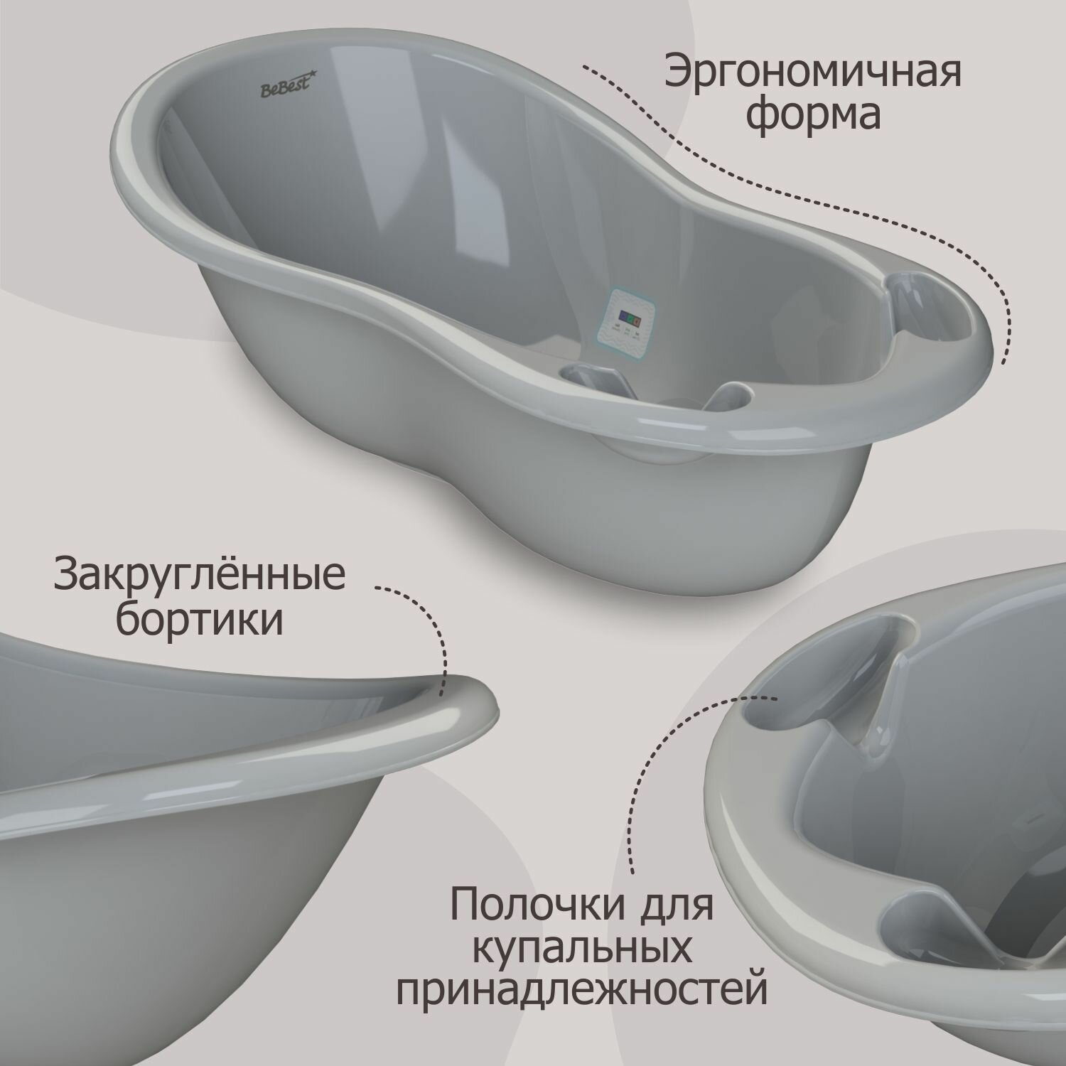 Ванночка для купания новорожденных BeBest Advance с термометром, серый интересное: