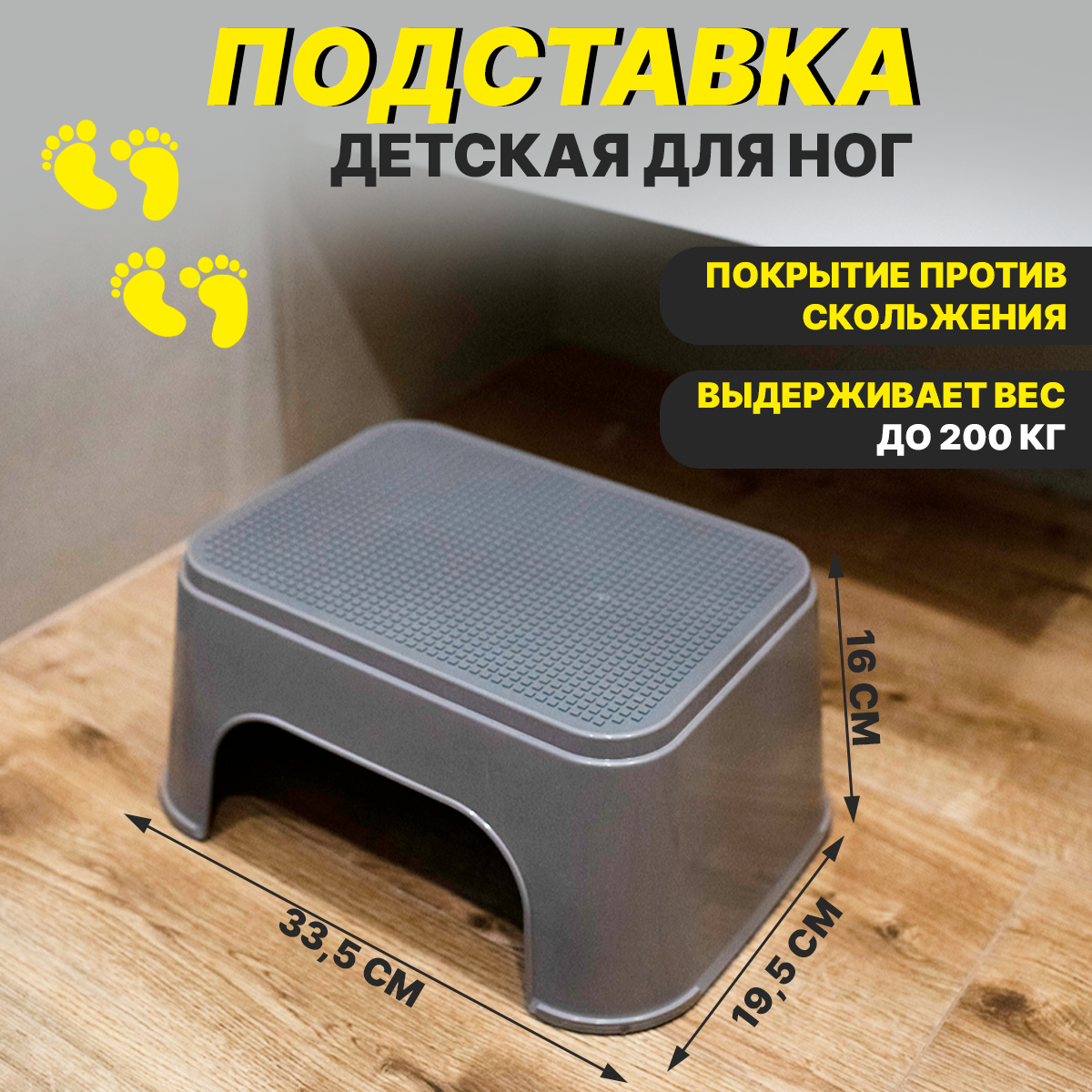 Подставка для ног детская, табурет пластиковый для детей, ступенька для унитаза, ванной, стульчик, стул серый