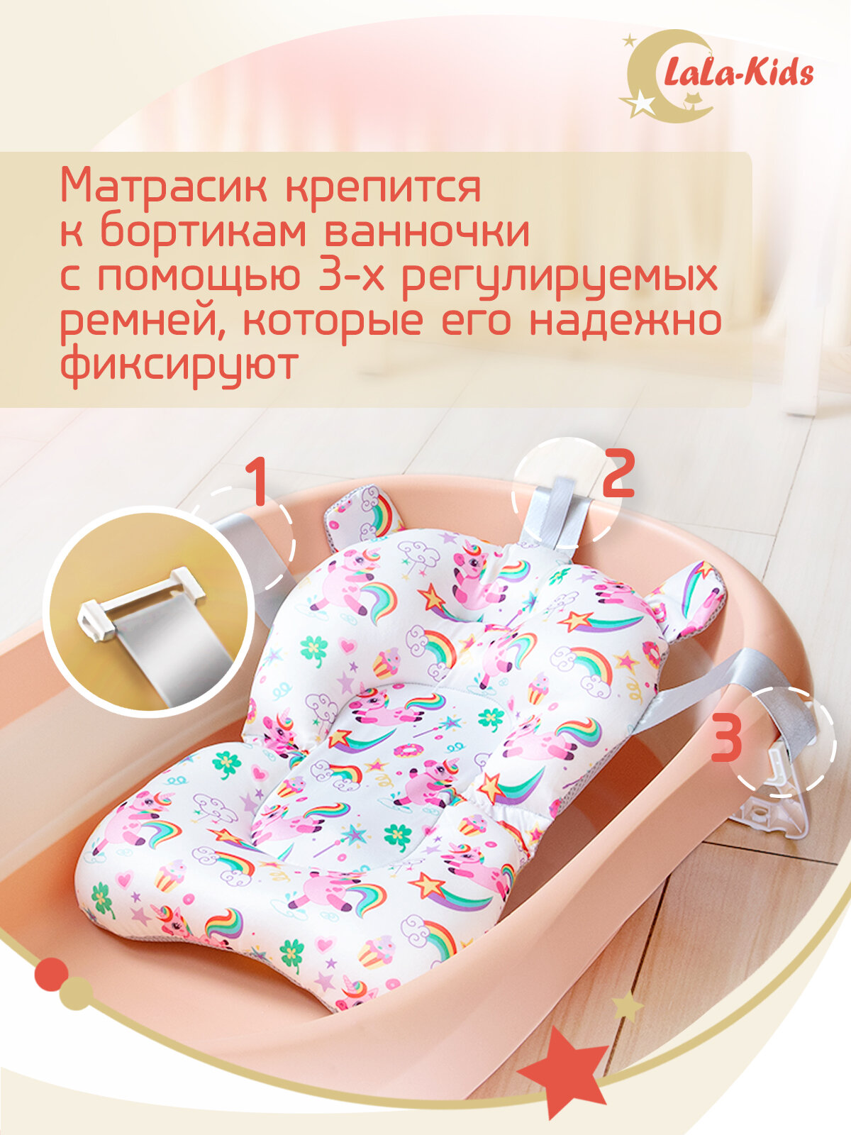 Горка для купания новорожденных LaLa-Kids матрасик персиковый
