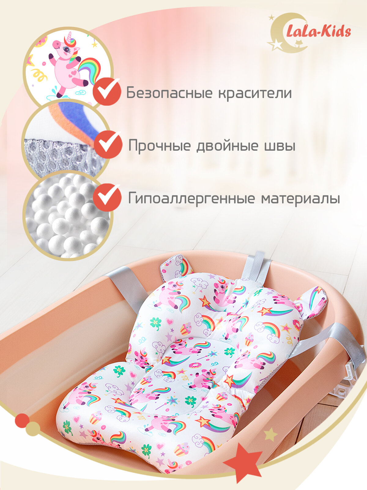 СохранитьГорка для купания новорожденных LaLa-Kids розовый интересное: