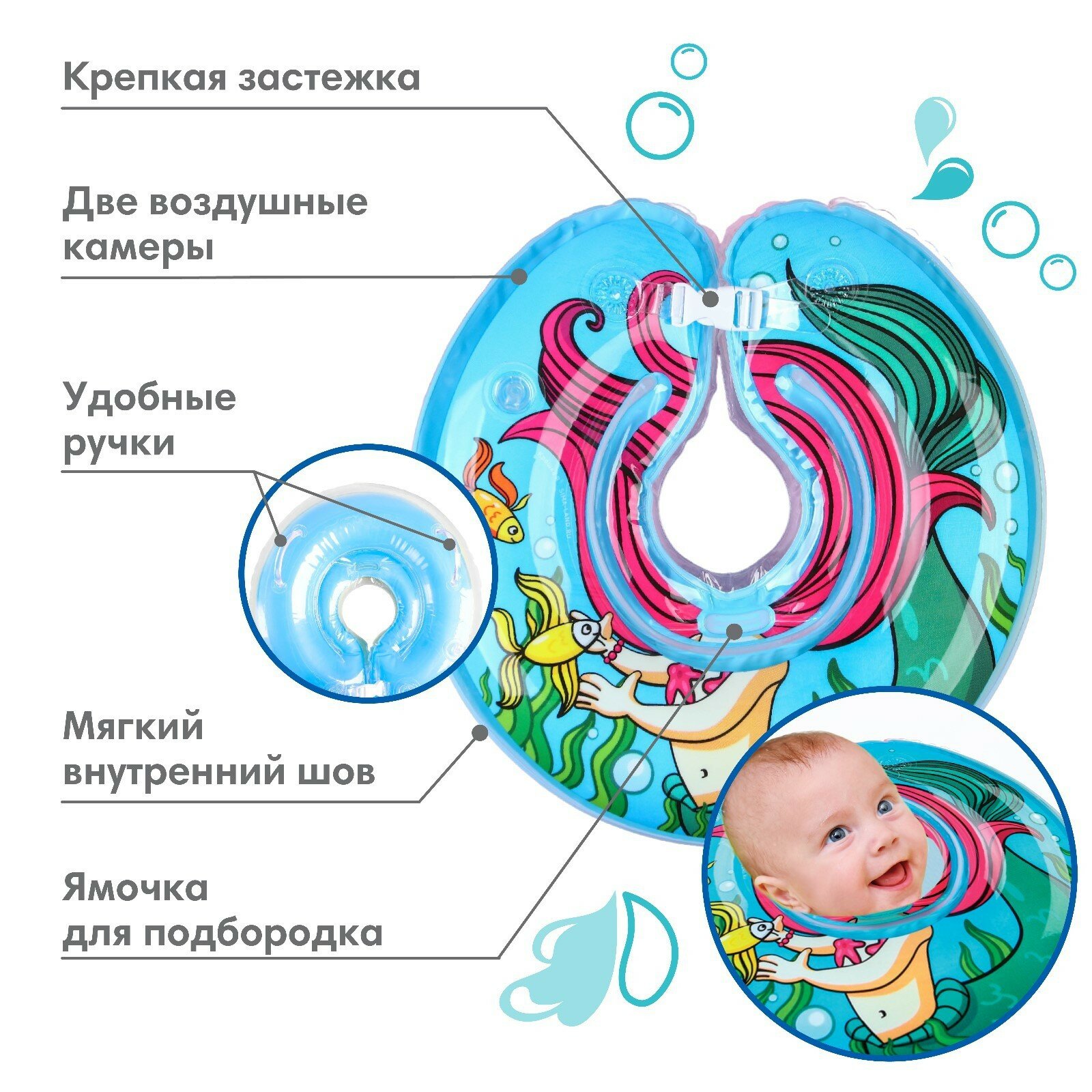 Круг детский на шею, для купания, «Русалочка», от 1 мес, двухкамерный, с погремушками интересное: