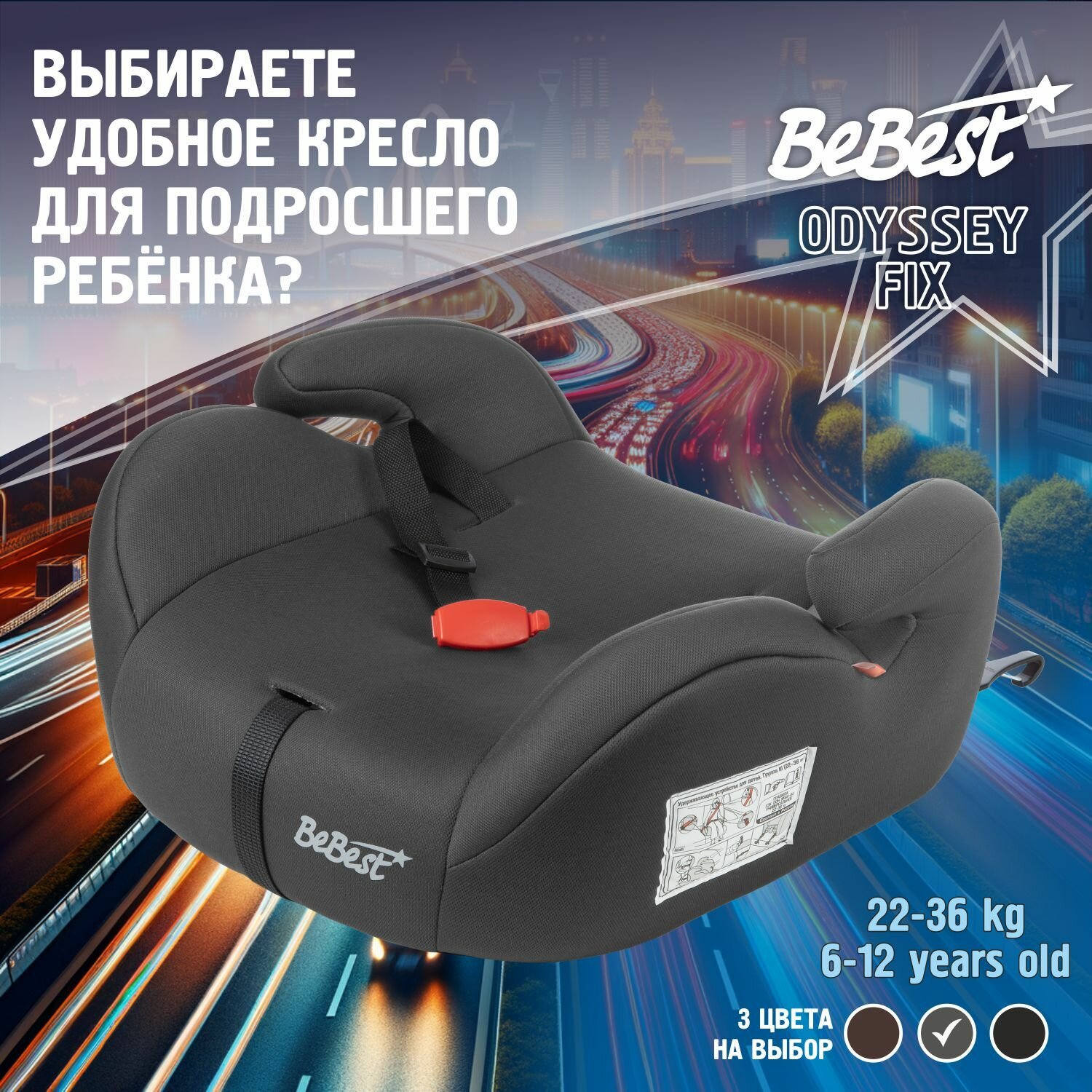Бустер автомобильный BeBest Odyssey FIX от 22 до 36 кг, grey интересное: