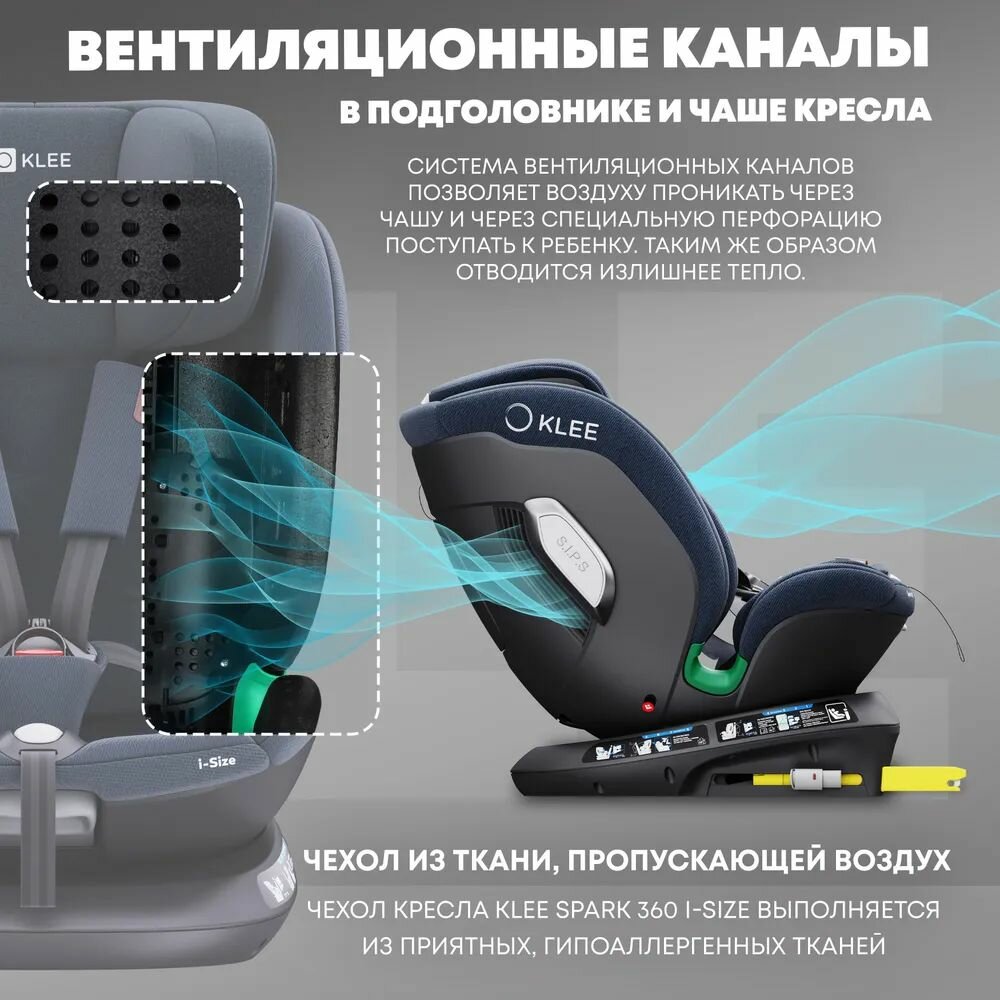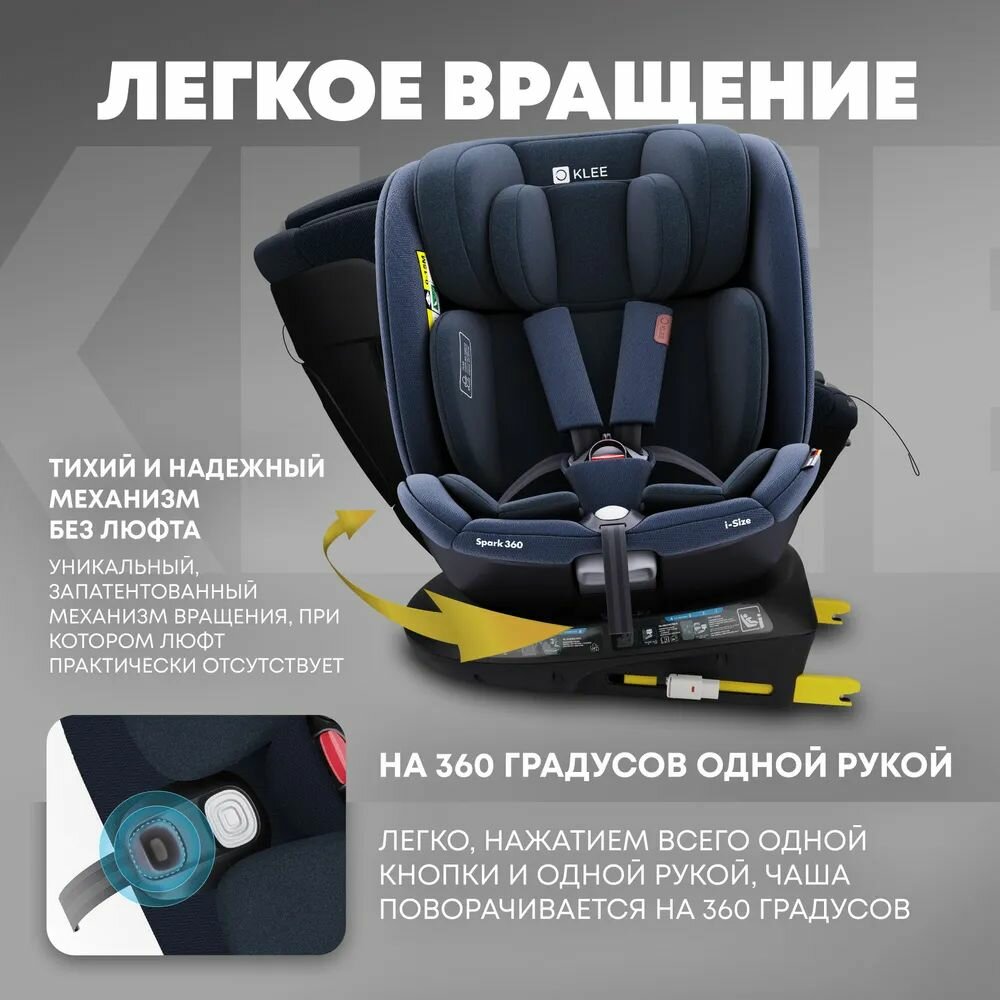 KLEE Spark i-Size 360 Deep Blue автокресло от 0 до 36 кг с IsoFix и легким вращением одной рукой интересное: