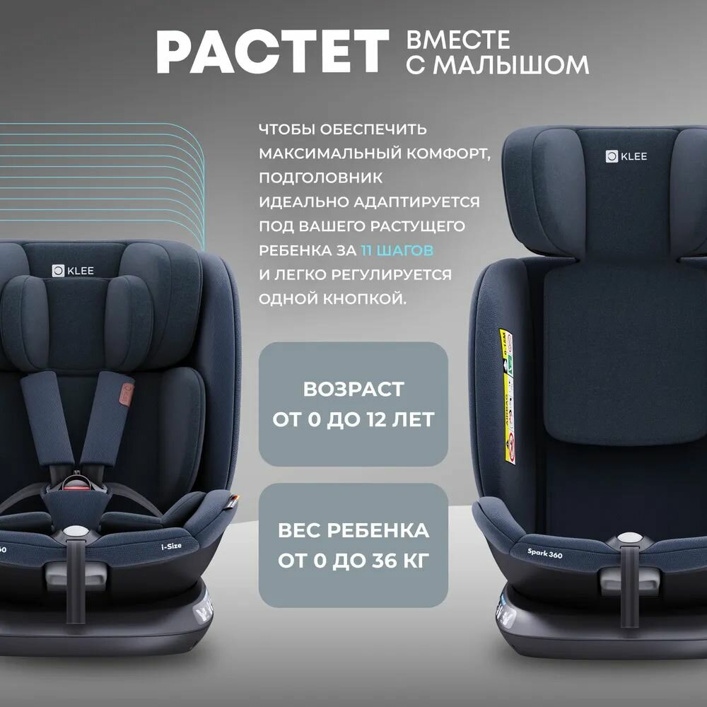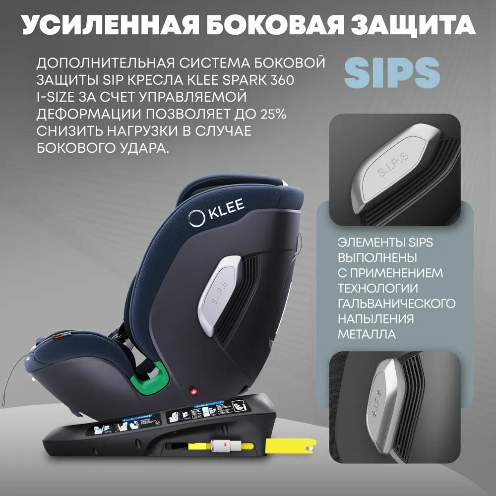 Купить KLEE Spark i-Size 360 Deep Blue автокресло от 0 до 36 кг с IsoFix и легким вращением одной рукой