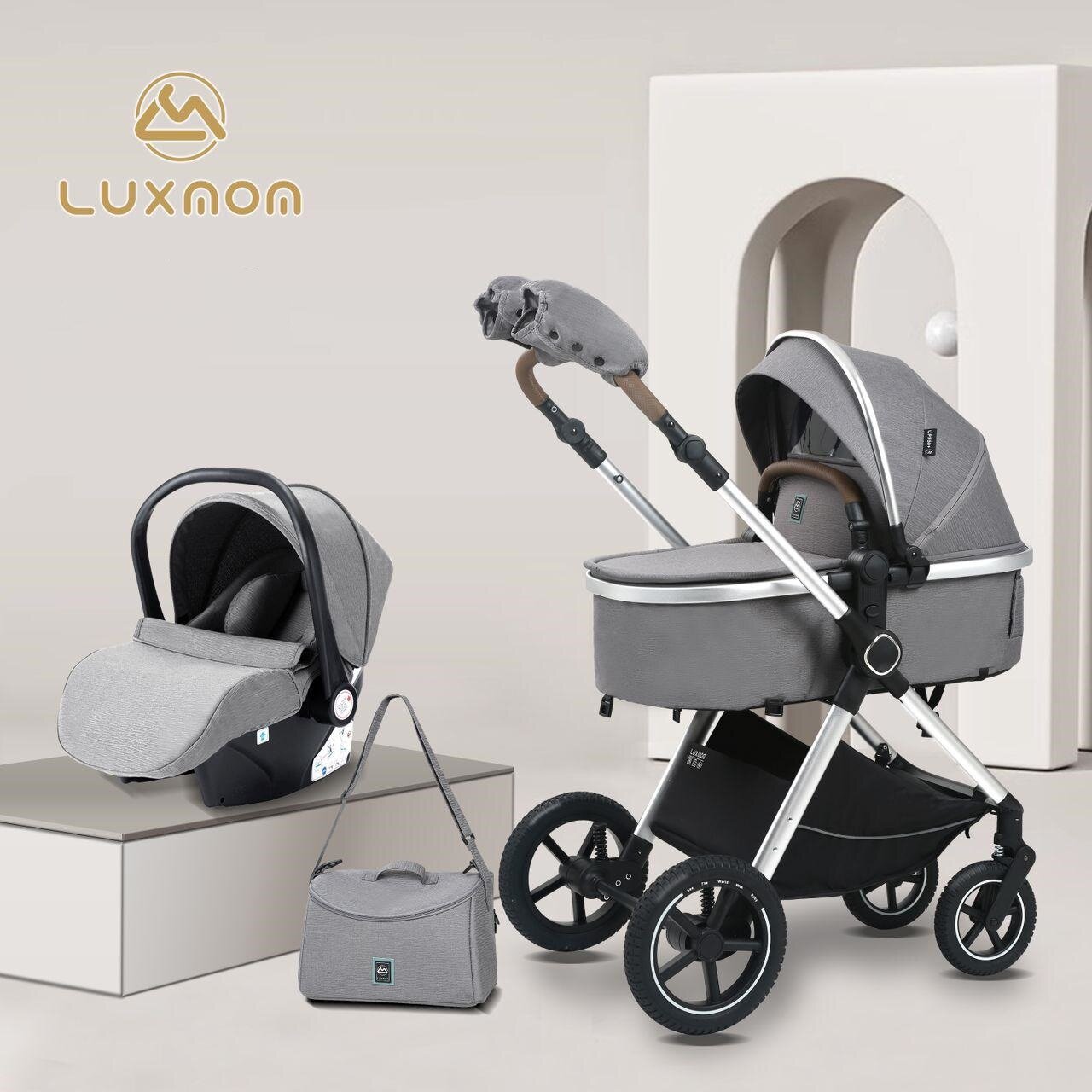 Коляска-трансформер 3 в 1 с перекидной ручкой Luxmom A6, серый интересное: