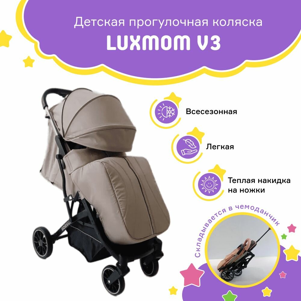 Коляска детская прогулочная для новорожденных Luxmom V3, бежевая интересное: