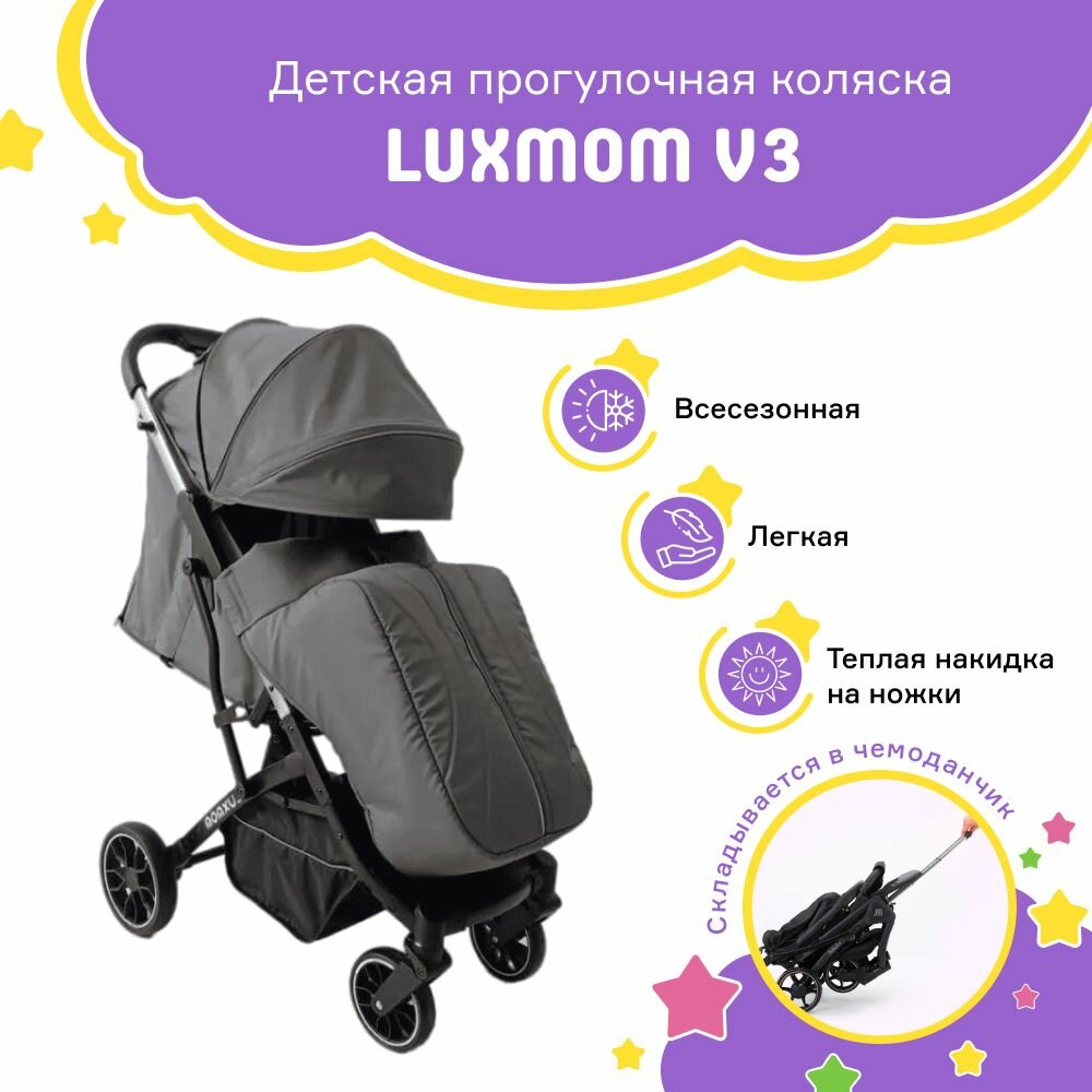 Коляска детская прогулочная для новорожденных Luxmom V3, серая интересное: