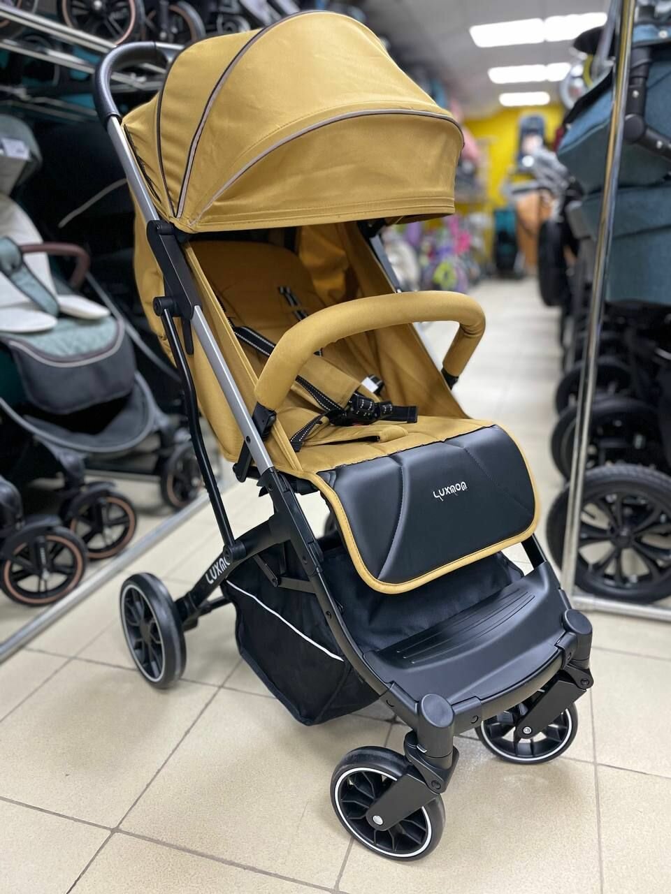 Коляска детская прогулочная для новорожденных Luxmom V3, горчичная интересное: