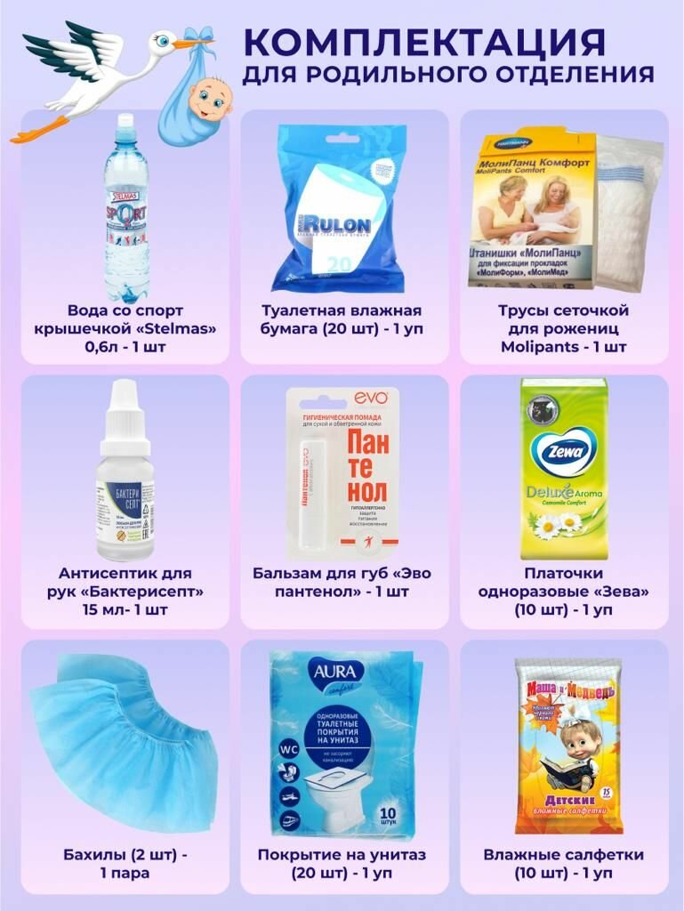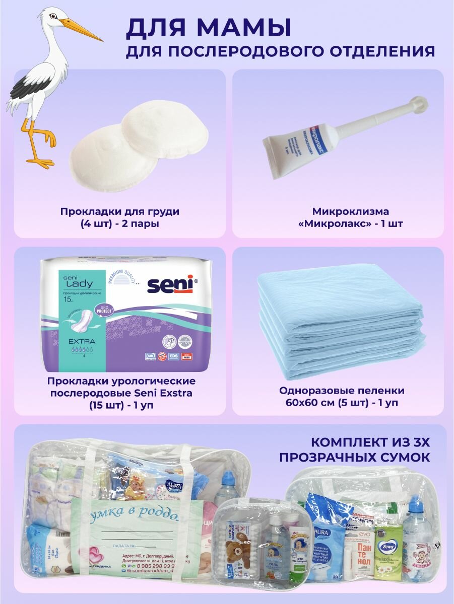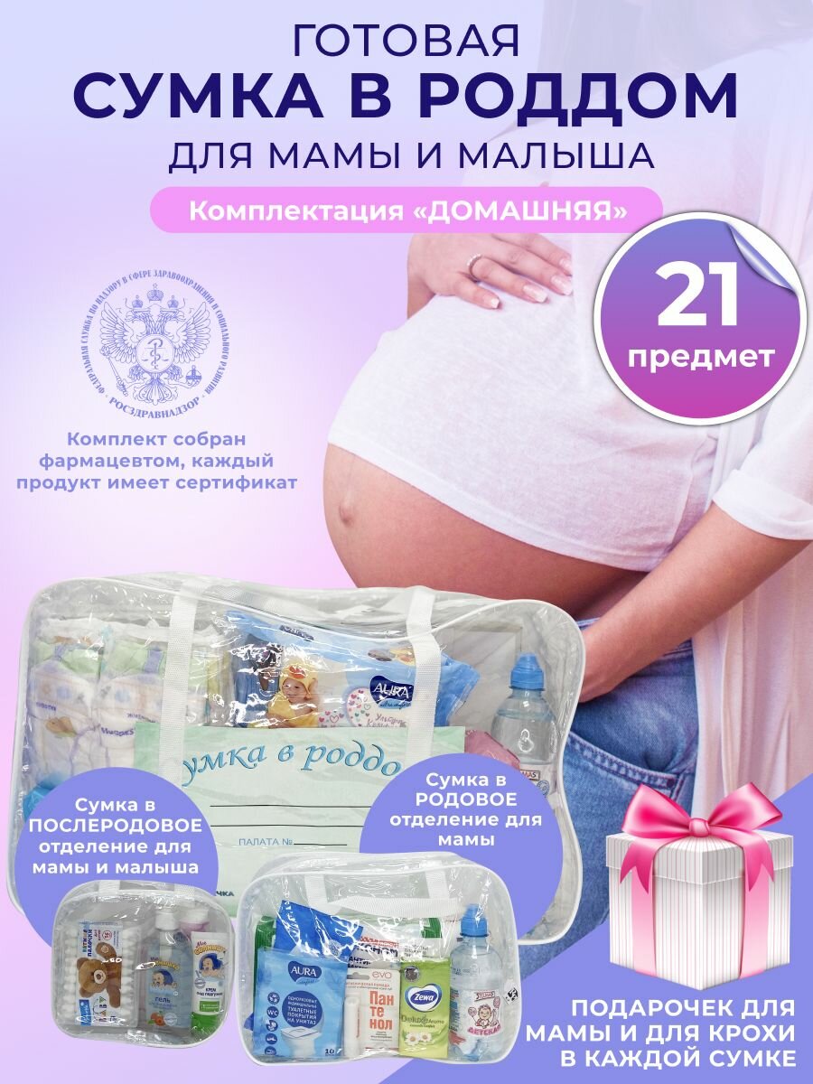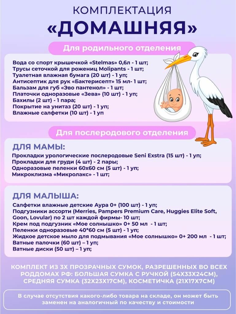 Сумка в роддом прозрачная готовая для мамы и малыша комплектация "Домашняя", цвет белый интересное: